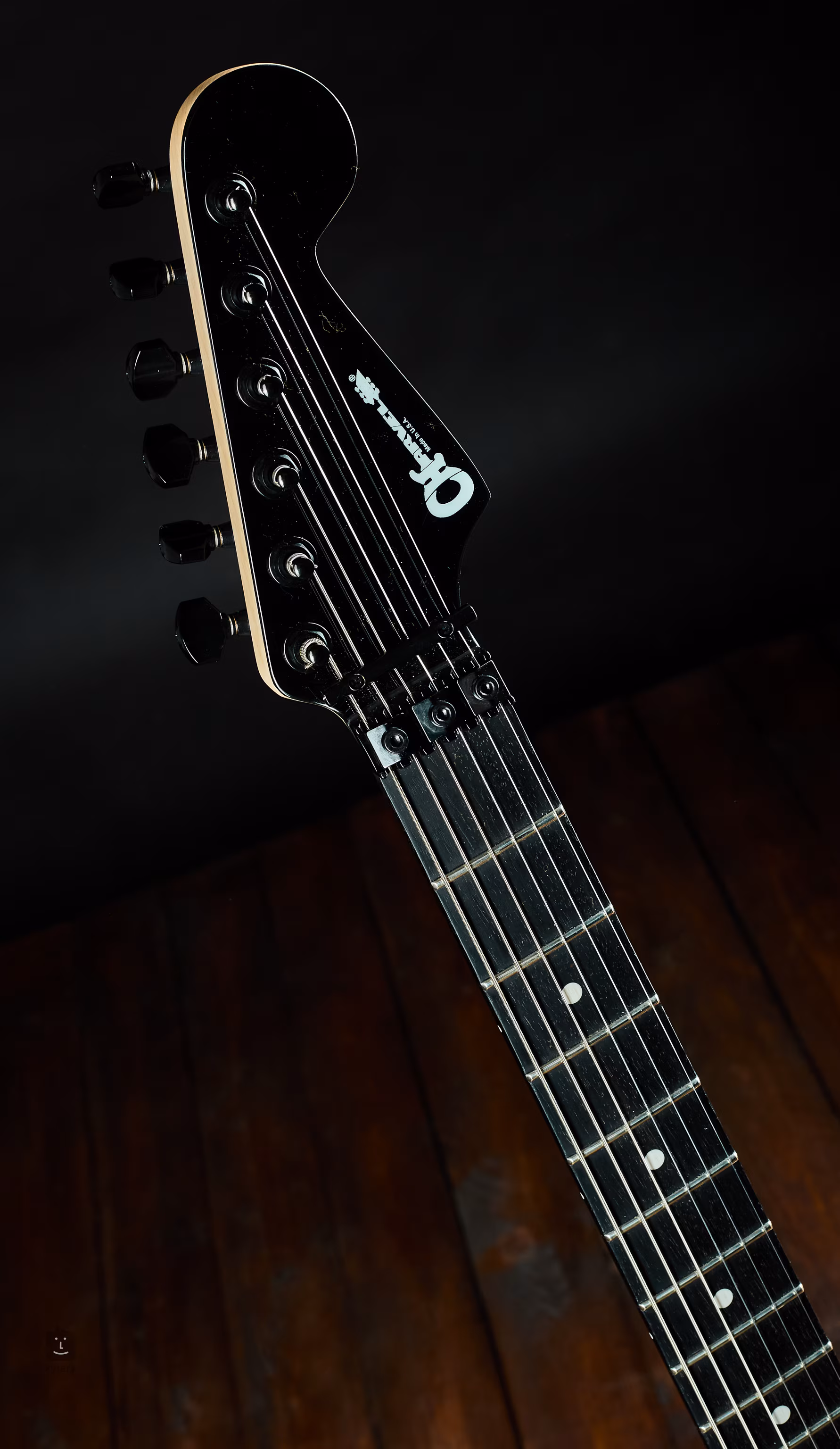 Osprzęt to przede wszystkim solidne oryginalne tremolo Floyd Rose z zerowym progiem Floyd Rose Locking R3. Przetworniki to 2 humbuckery Dimarzio D Activator X w kontrastującym białym wykończeniu.