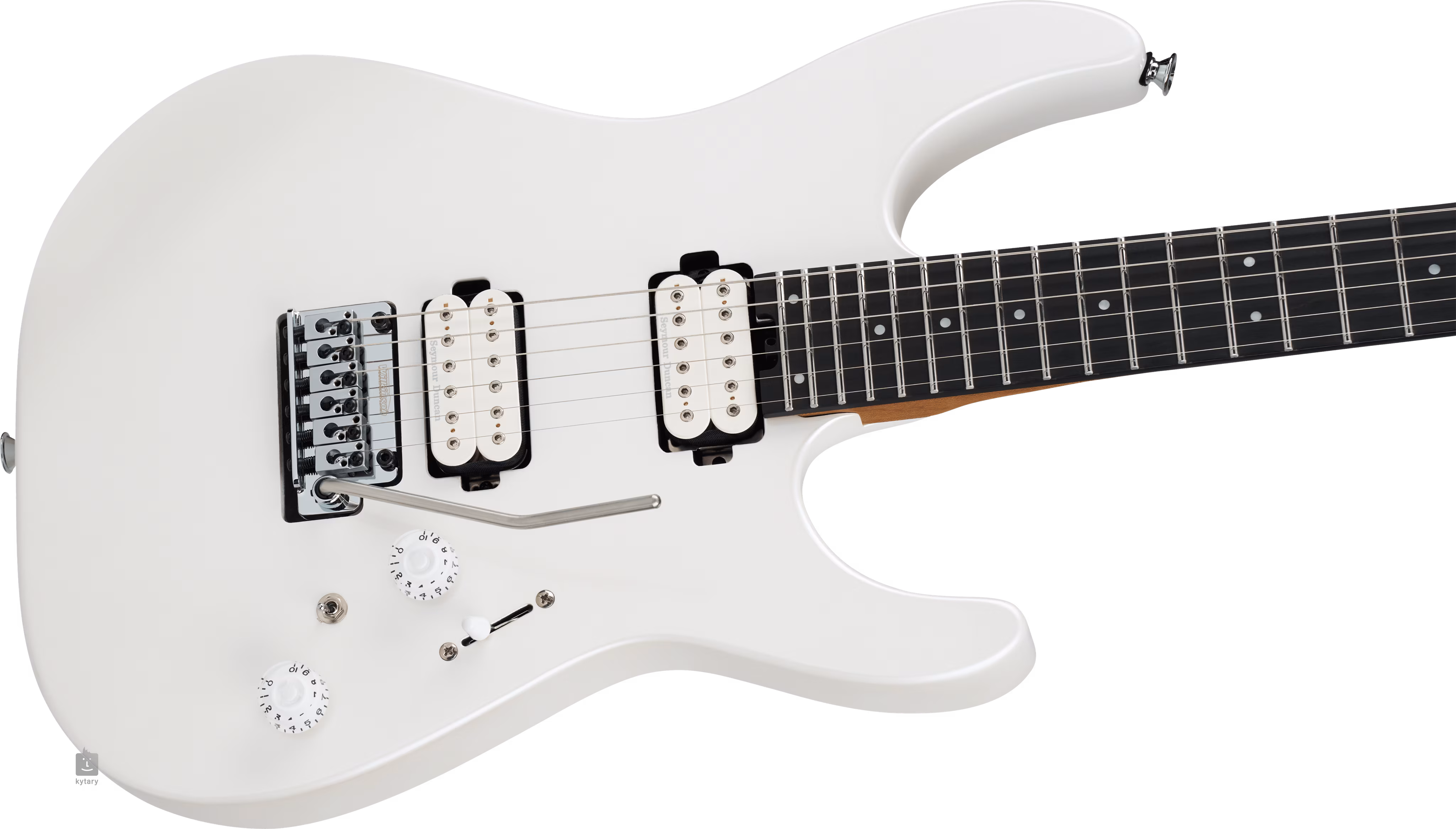 Gitara elektryczna Pro-Mod Plus DK24 HH 2PT EB EBY Celestial Silk marki Charvel oferuje konstrukcję typu Dinky/Superstrat z szyjką przykręconą do korpusu oraz szereg elementów premium.