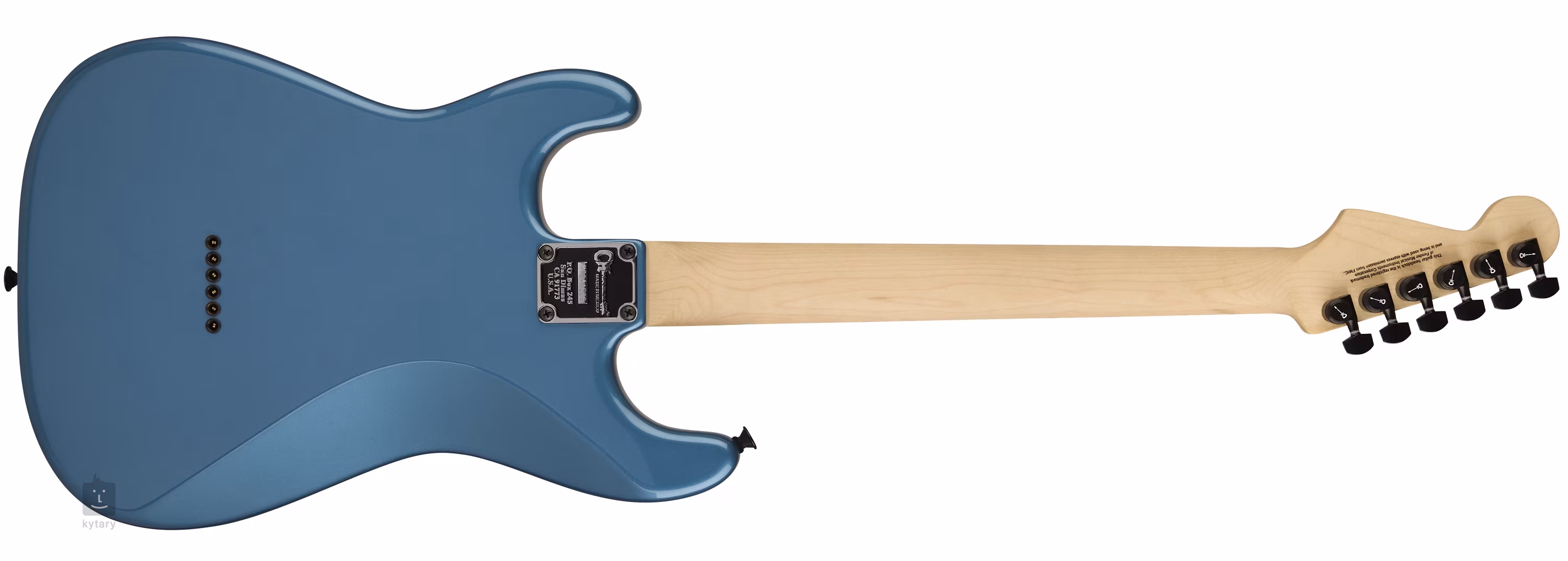 Stabilne strojenie jest gwarantowane przez mocowanie strun w firmowych, zamykanych napędach odlewanych ciśnieniowo oraz przez solidną podstrunnicę przechodzącą przez korpus gitary. Stylowe wykonanie podkreśla czarny osprzęt i pickguard w specyficznym kształcie gitar Charvel "So-Cal".