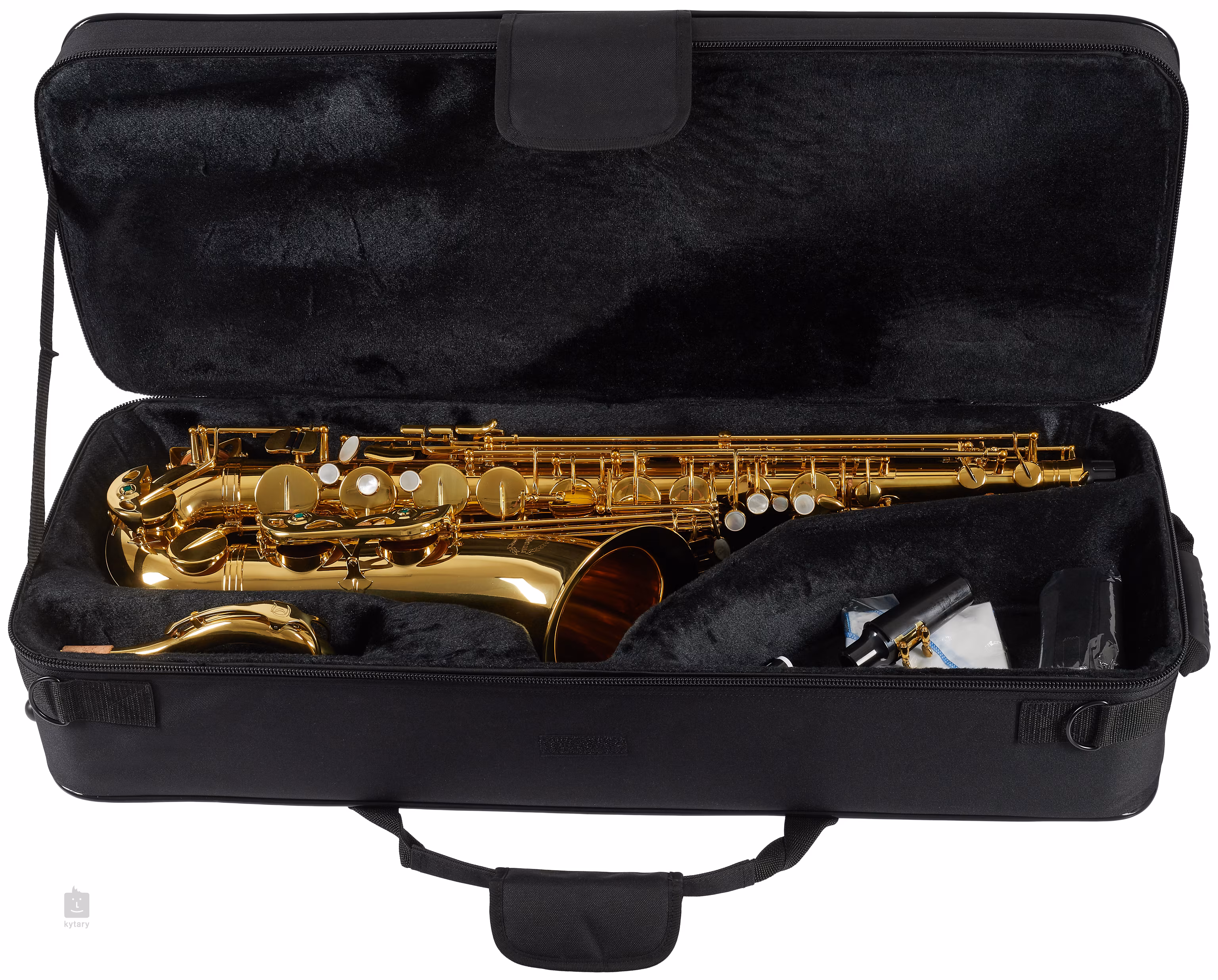 Saksofon tenorowy Chateau CTS-22GL to idealny wybór dla początkujących saksofonistów i uczniów szkół muzycznych. Jest to przystępny cenowo saksofon z mosiężnym korpusem, "żebrowaną" konstrukcją z mechaniką najpierw przylutowaną do mosiężnej płytki (żebra), a następnie do korpusu, wysoką klapą Fis, perłową inkrustacją klap, grawerowaniem na płycie rezonansowej i wykończeniem złotym lakierem. Saksofon dostarczany jest w futerale z akcesoriami.