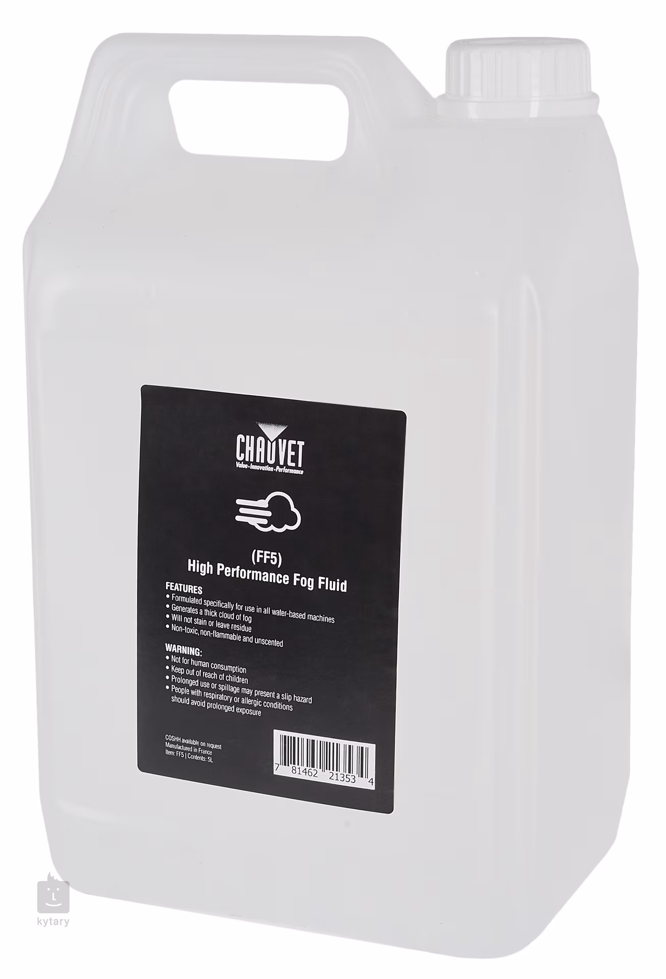 Profesjonalny wkład do wytwornicy mgły FJ5 firmy Chauvet jest odpowiedni dla wszystkich popularnych wytwornic mgły, które wykorzystują płyn na bazie wody. Model ten wytwarza mgiełkę o średniej masie, która jest idealna do większości zastosowań, takich jak koncerty, imprezy, pokazy świetlne, a nawet imprezy taneczne. Płyn jest niepalny, nietoksyczny i bezwonny.