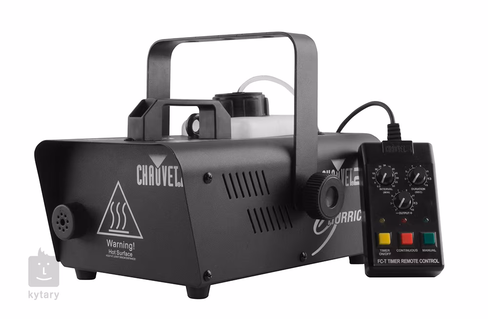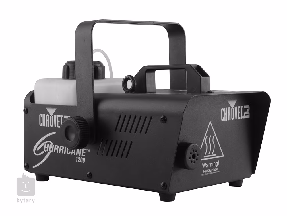 Lekki i kompaktowy generator mgły Hurricane 1200 firmy Chauvet to idealny wybór dla mobilnych artystów, klubów nocnych, mniejszych scen, strasznych alejek w parkach rozrywki i wielu innych sytuacji. Oferuje wysoką wydajność 510 m³ na minutę i pojemność zbiornika 1 litr. Pierwsze nagrzanie do temperatury roboczej trwa około 2 minut, po czym generator jest stale gotowy do działania. Urządzenie można sterować za pomocą przewodowego pilota z timerem, który jest dołączony do zestawu. Podświetlany zbiornik na płyn ułatwia monitorowanie stanu zbiornika nawet w ciemnym otoczeniu i jest wyposażony w czujnik bezpieczeństwa, który kontroluje temperaturę i ilość płynu. Całkowita waga generatora wynosi 2,9 kg, a jego wymiary to 286 x 235 x 209 mm. Jako odpowiedni płyn można użyć dowolnego płynu do zamgławiaczy na bazie wody. Do generatora można dokupić bezprzewodowy pilot zdalnego sterowania FC-W.
