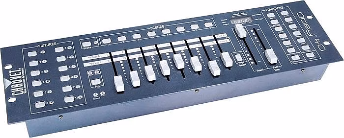 Kontroler jest zdominowany przez intuicyjny panel sterowania, który jest bardzo przejrzyście zorganizowany. Znajduje się na nim 12 przycisków do sterowania poszczególnymi światłami, 8 przycisków do sterowania kanałami, 8 przycisków do aktywacji scen i 6 przycisków do sterowania sekwencjami. Dostępne są również dedykowane pokrętła do ustawiania prędkości sekwencji (Speed) i mieszania sekwencji (Fade Time). Dostępny jest również czytelny wyświetlacz ułatwiający nawigację między bankami oraz kilka przycisków do synchronizacji dźwięku, aktywacji programów automatycznych, tap tempo lub sterowania MIDI. Wreszcie, istnieją indywidualne przyciski do sterowania foggerem i stroboskopem.