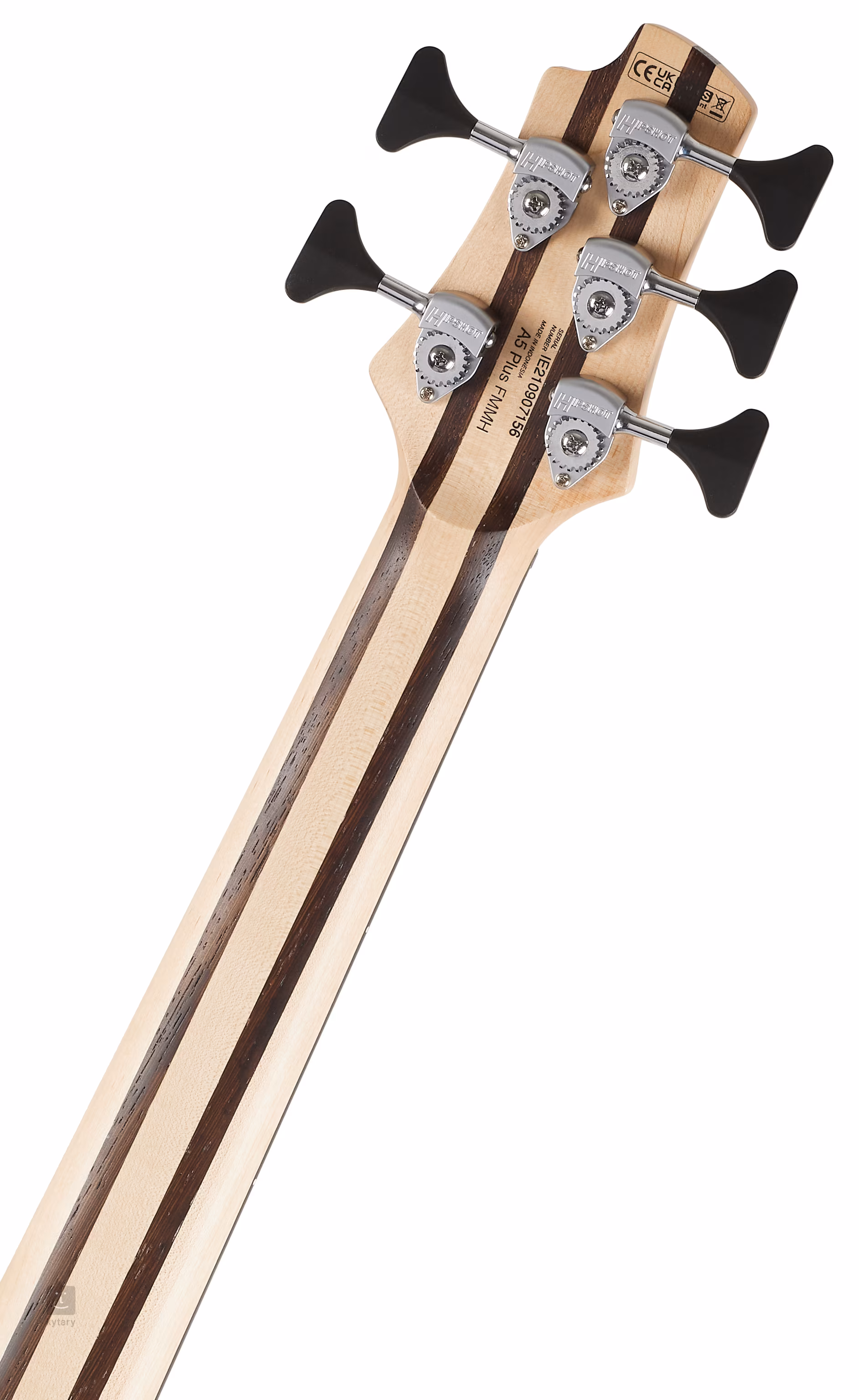 Model A5 Plus z serii Artisan posiada przelotową szyjkę składającą się z pięciu kawałków drewna klonowego i wenge, co pozwala na równomierne przenoszenie wibracji strun na korpus, co skutkuje bardzo specyficznym brzmieniem z idealnym stosunkiem basów, średnich i wysokich tonów. Do szyjki przymocowane są mahoniowe podstrunnice z okleiną z klonu figuralnego. Pickguard Hipshot Transtone pozwala strunom zarówno przechodzić przez korpus, jak i być przymocowanym do płyty rezonansowej, co dodatkowo rozszerza możliwości tonalne instrumentu. Z drugiej strony struny są zamontowane w precyzyjnych maszynkach do strojenia tej samej firmy.