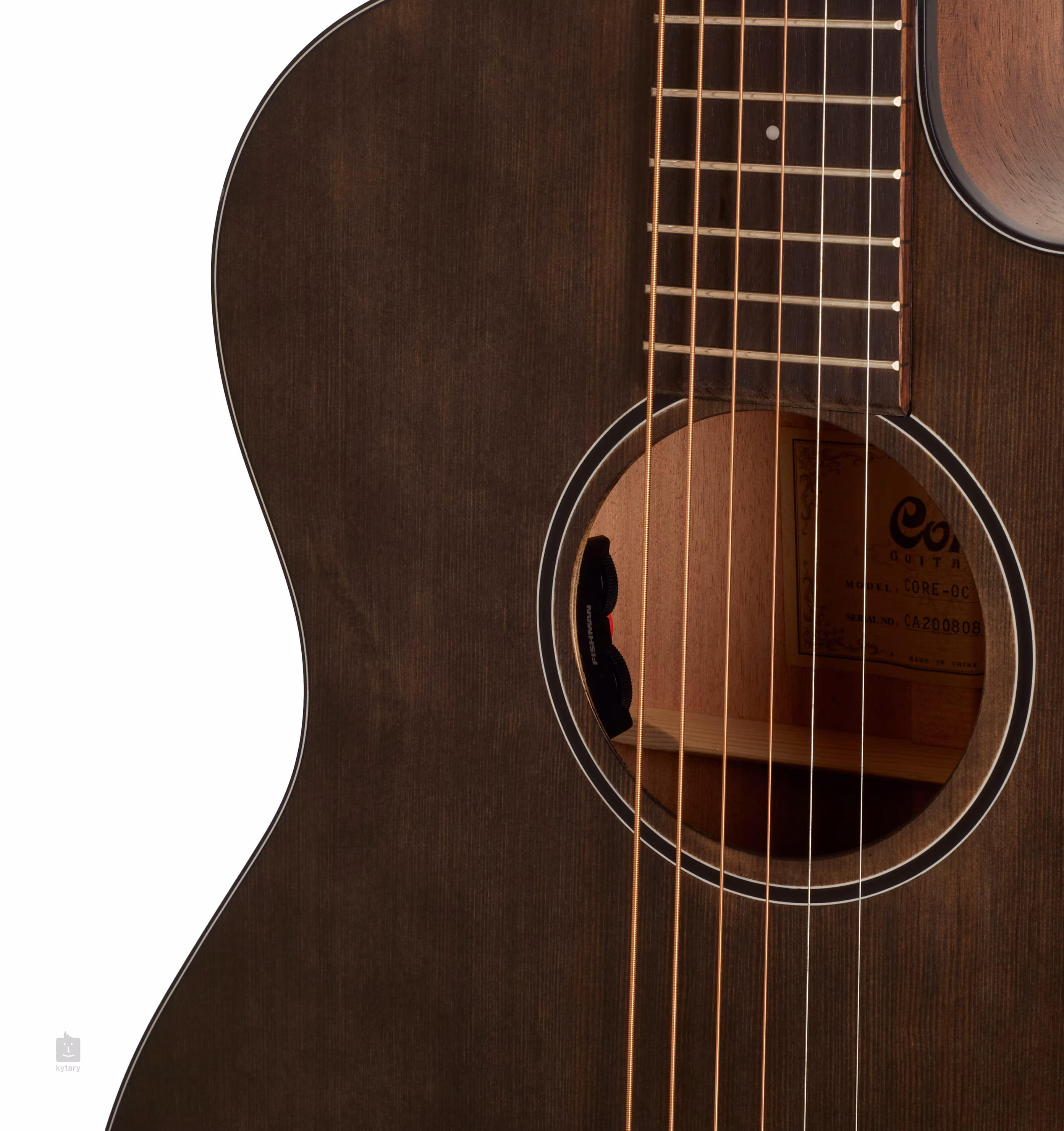 Łatwe opcje wyboru brzmienia zapewnia elektronika Fishman Sonitone z przetwornikiem Sonicore underdrive oraz potencjometrami Volume i Tone umieszczonymi w otworze dźwiękowym instrumentu.