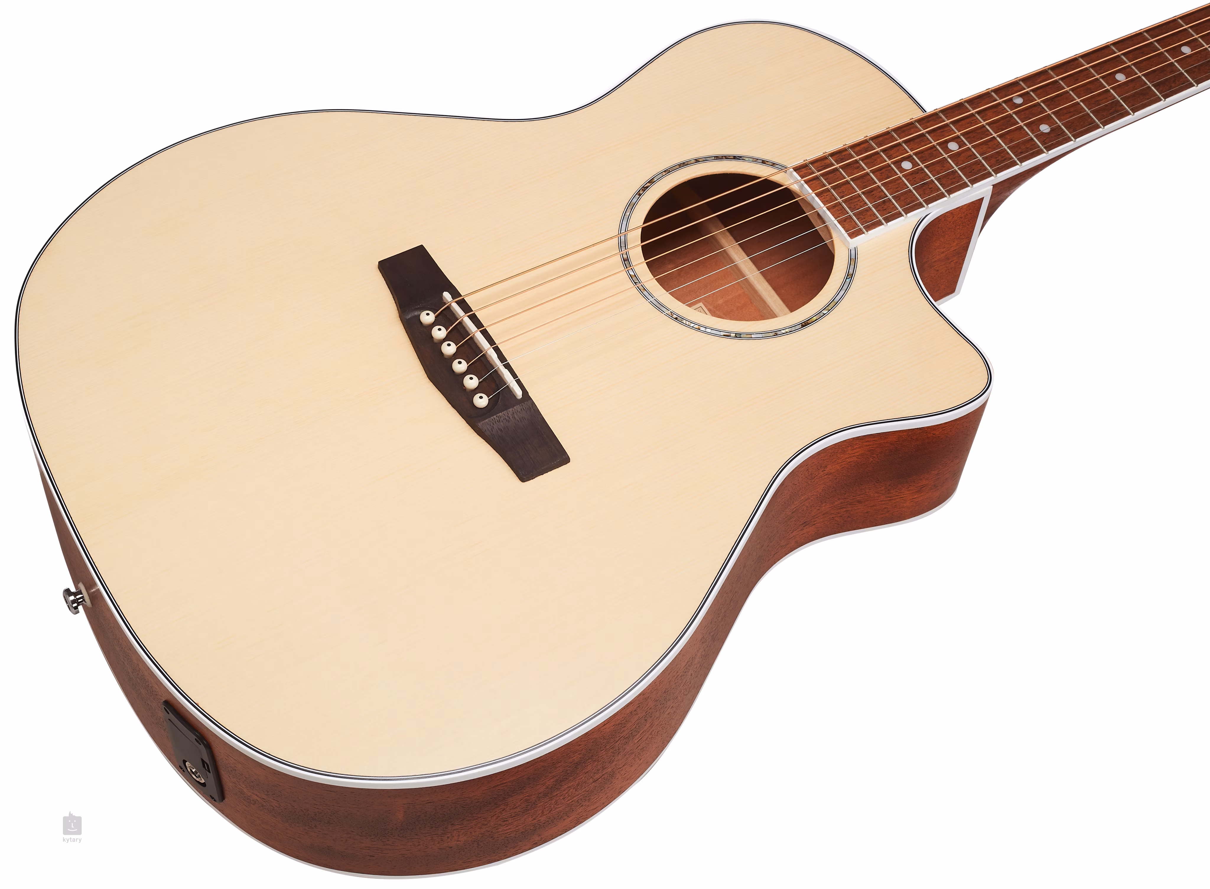 Mocowanie strun w specjalnie ukształtowanej podstrunnicy z merbau i chromowanej obudowie die-cast zapewnia dobry sustain i stabilność stroju. Tradycyjne elementy wzornictwa uzupełnia ozdobna rozeta z masy perłowej, wykończenie z kości słoniowej oraz logo na główce.