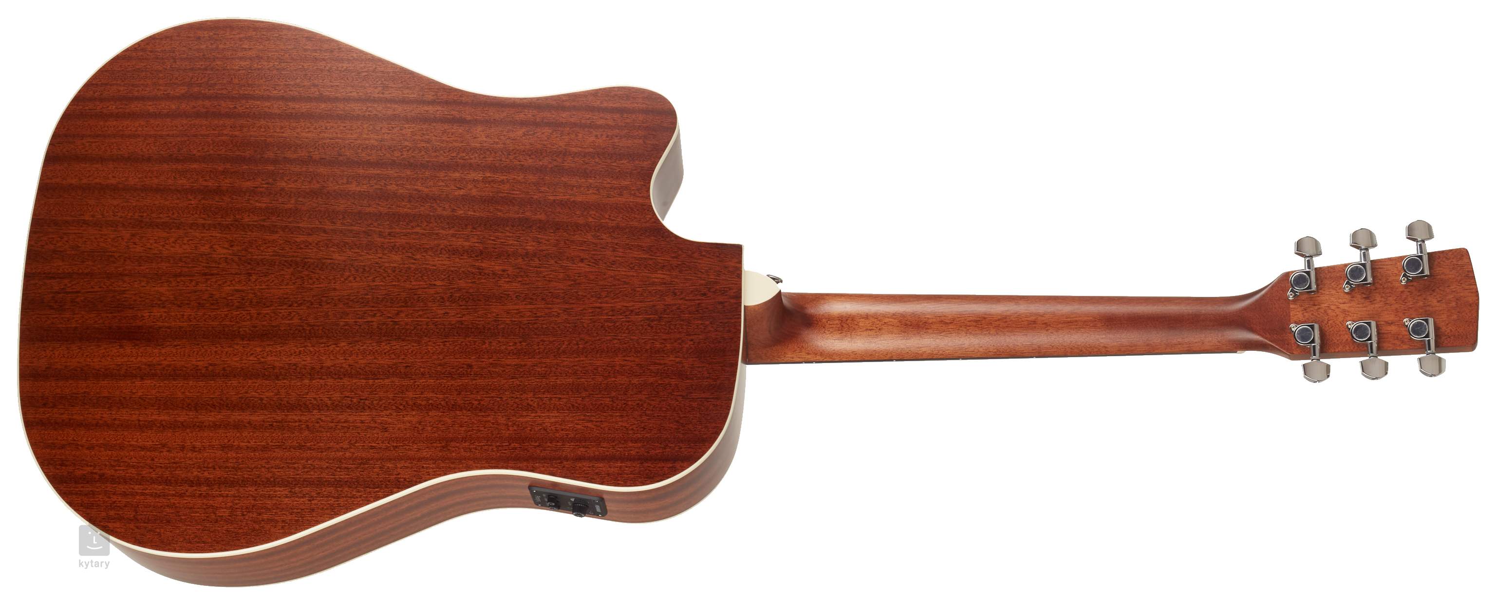 Mocowanie strun w specjalnie ukształtowanej podstrunnicy ovangkol i mechanizm die-cast gwarantuje dobry sustain i stabilność stroju. Tradycyjne elementy wzornictwa uzupełnia ozdobna rozeta z pierścieni ABS, jasny binding oraz praktyczny pickguard z imitacji skorupy żółwia.