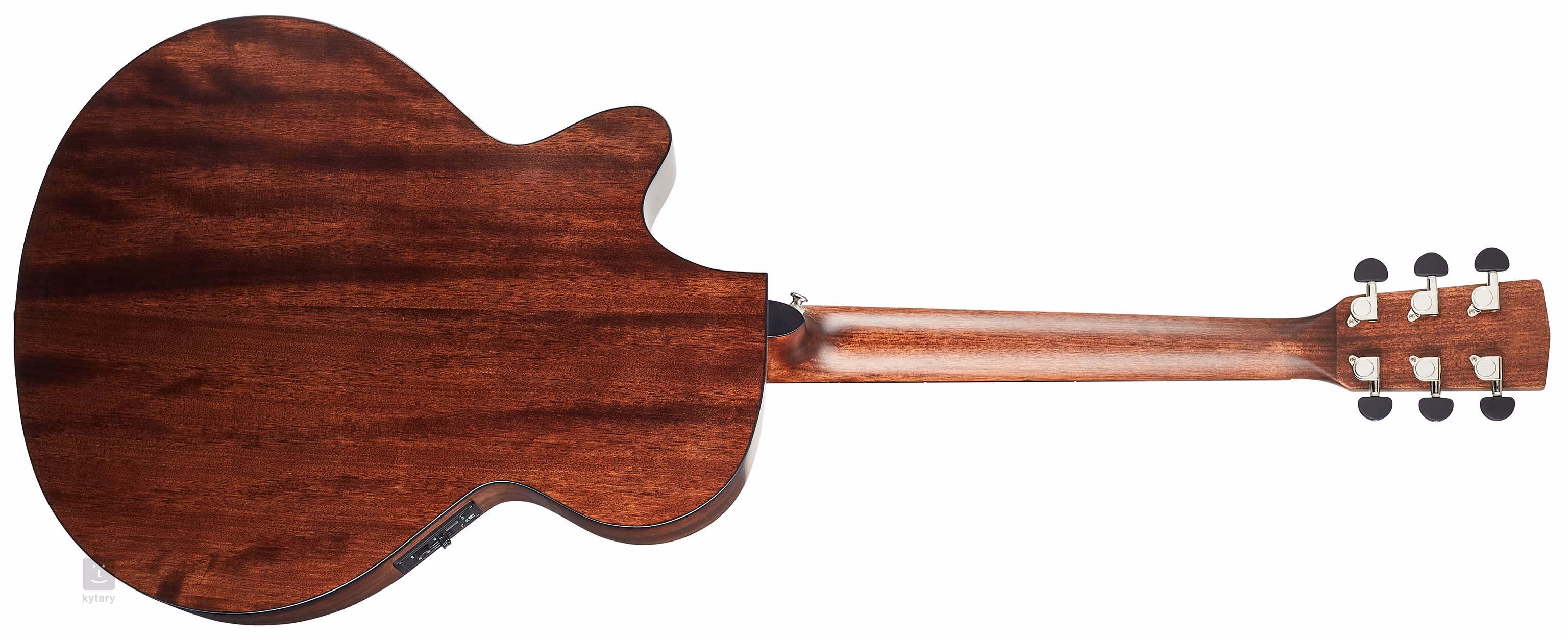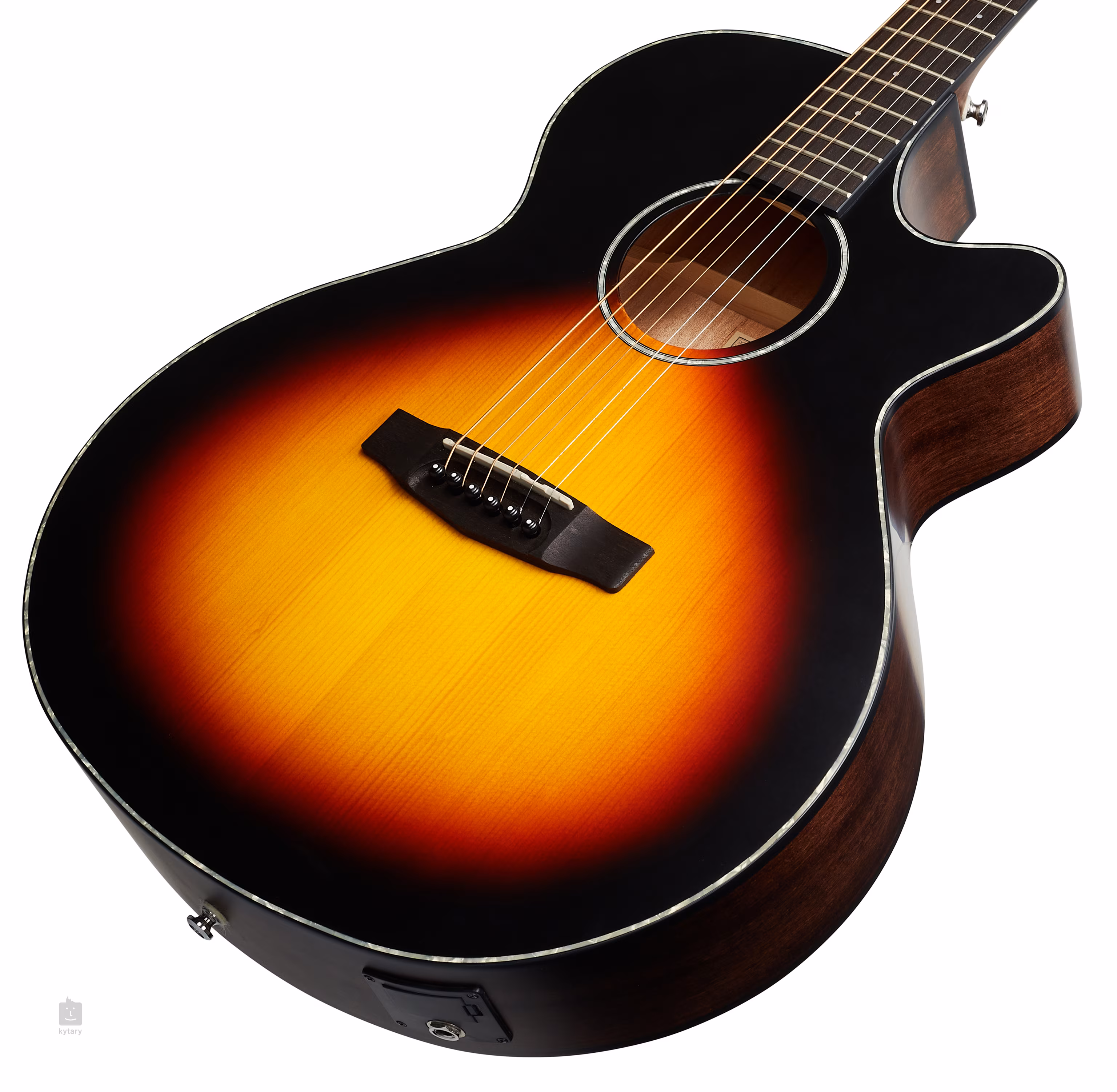 Korpus gitary SFX-E wykonany jest z litego świerku z przodu oraz mahoniu z tyłu i boków. To sprawdzone połączenie drewna daje instrumentowi zrównoważone brzmienie z niezbędną ilością tonalnej klarowności i ciepła. Do mahoniowej szyjki przyklejona jest 20-fretowa podstrunnica ovangkol. Stylistykę gitary podkreśla rozeta z masy perłowej oraz czarny binding na obwodzie, a dopełnieniem jest pickguard z masy perłowej na płycie rezonansowej.