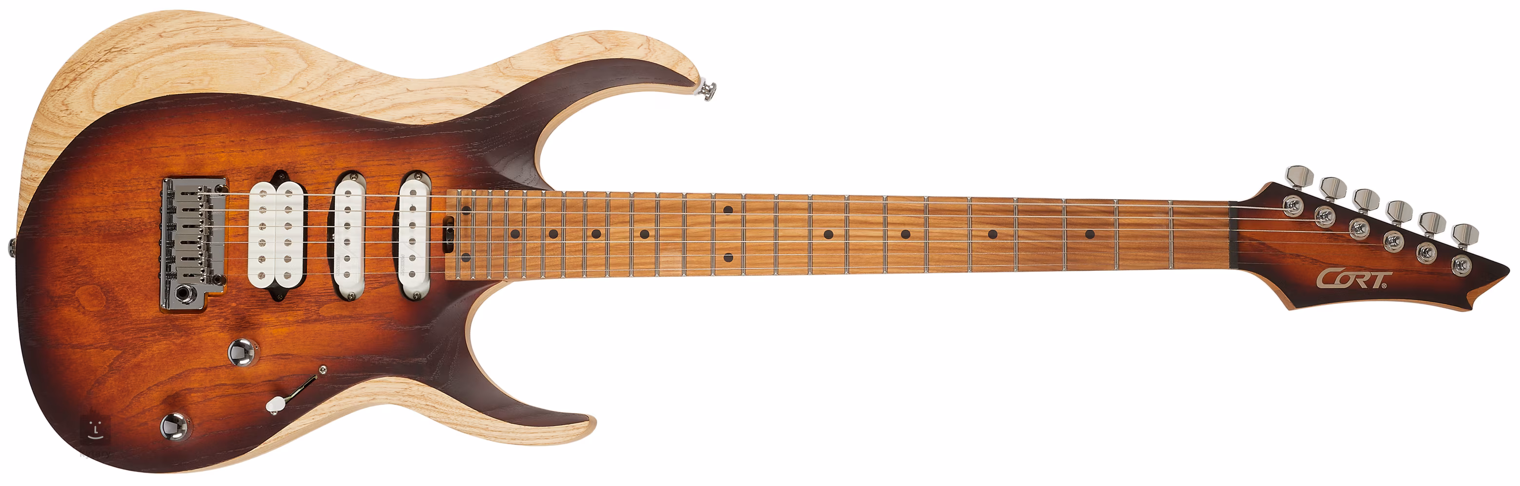 X700 Triality to kolejny krok Corta w kierunku wyższej klasy modeli z pełną profesjonalną specyfikacją, który należy traktować poważnie. Ergonomicznie ukształtowany korpus gitary wykonany jest z jesionu bagiennego. Pięcioczęściowa szyjka z klonu i orzecha włoskiego jest przykręcona do klonowej podstrunnicy wyposażonej w dwadzieścia cztery progi ze stali nierdzewnej. Obróbka cieplna szyjki i podstrunnicy zapewnia drewnu dodatkową stabilność i przyjemny, złocisty wygląd. Orientację na podstrunnicy ułatwiają czarne kropki pozycyjne i świecące kropki z boku.
