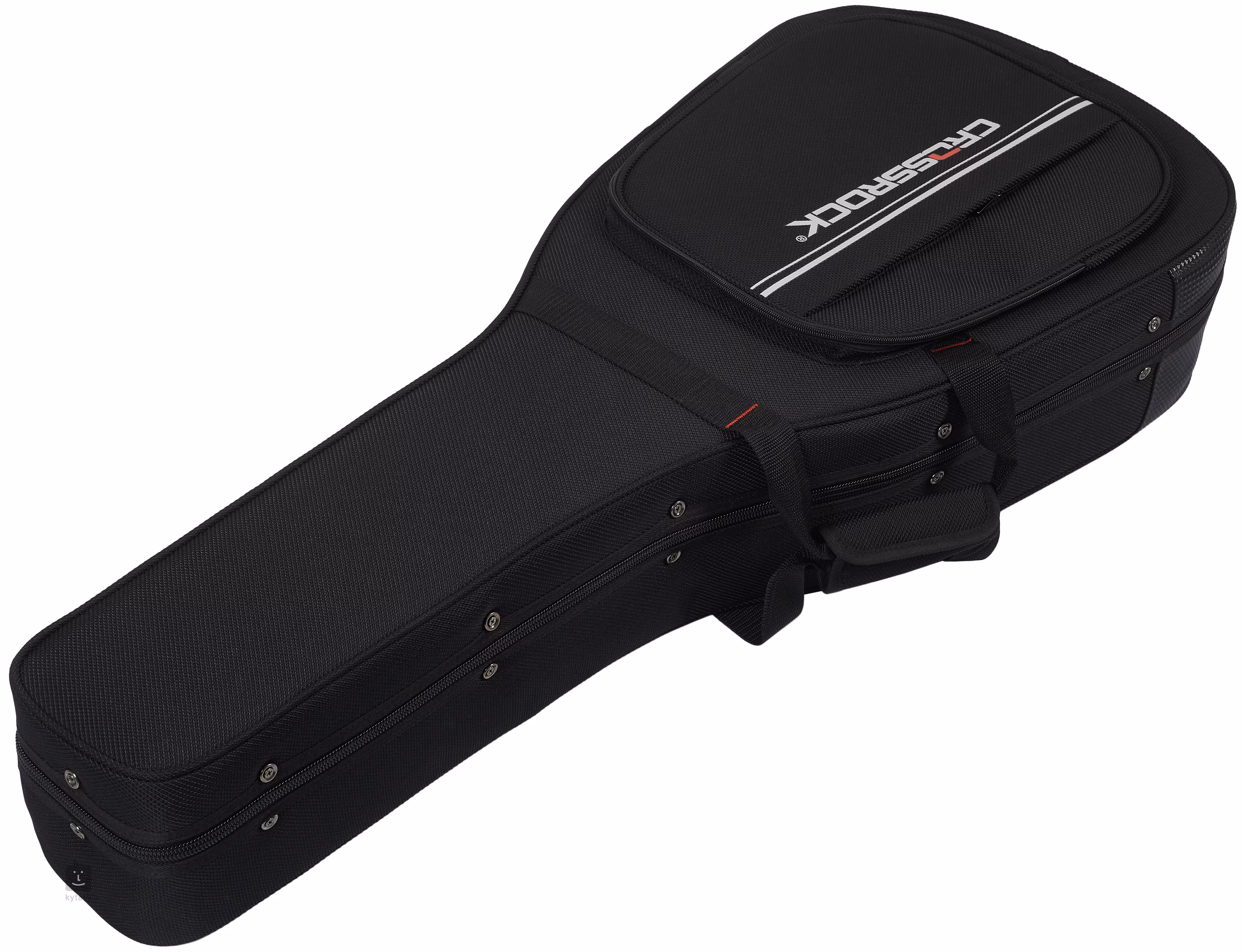 Futerały gitarowe Crossrock z serii CRP300 stanowią szczęśliwy środek między lekkimi futerałami a wytrzymałymi futerałami - dzięki połączeniu nylonu, gęstej pianki EPS i miękkiego wewnętrznego pokrowca z owczej wełny, futerały zachowują niewielką wagę, a jednocześnie zapewniają wysoki poziom ochrony, którego konwencjonalne miękkie futerały nie są w stanie zaoferować. Zewnętrzna warstwa nylonu jest bardzo wytrzymała, wewnętrzna wyściółka to gruba warstwa pianki, a delikatne pluszowe wnętrze zapewnia ochronę instrumentu przed zarysowaniami i innymi uszkodzeniami mechanicznymi.