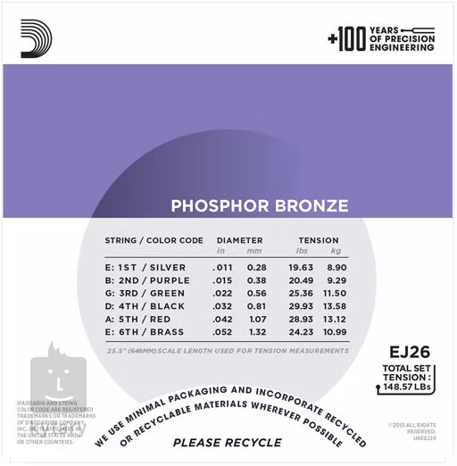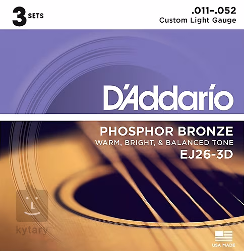 W tym opakowaniu znajdziesz trzy zestawy strun D'Addario Phosphor Bronze o twardości 011".