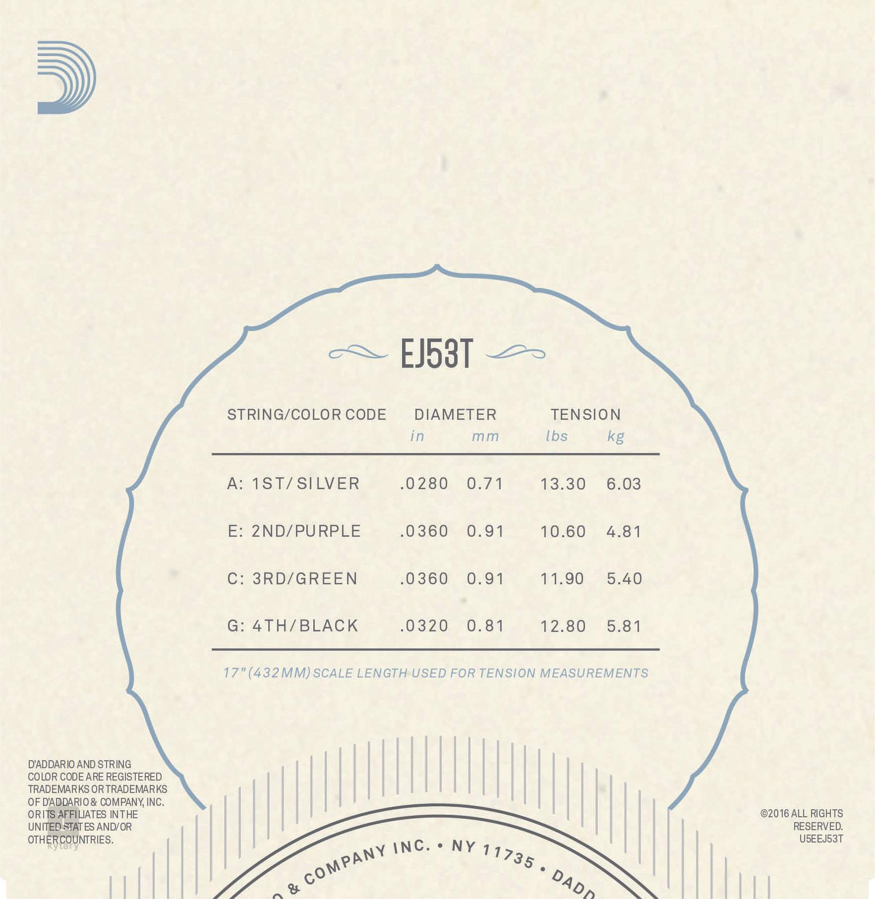 Struny D'Addario z serii Black Nylon są wykonane z wytłaczanego czarnego nylonu Pro-Arté, który zapewnia ciepłe brzmienie z wyraźną projekcją, świetną dynamiczną reakcją i doskonałą intonacją. Oferuje on również długą żywotność. Ten zestaw jest przeznaczony do ukulele tenorowych i jest szczególnie odpowiedni do strojenia GCEA.