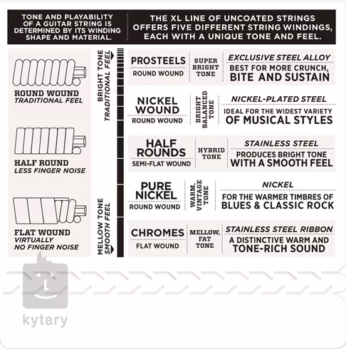 Grubości poszczególnych strun: .011/.014/.018/.030/.042/.052