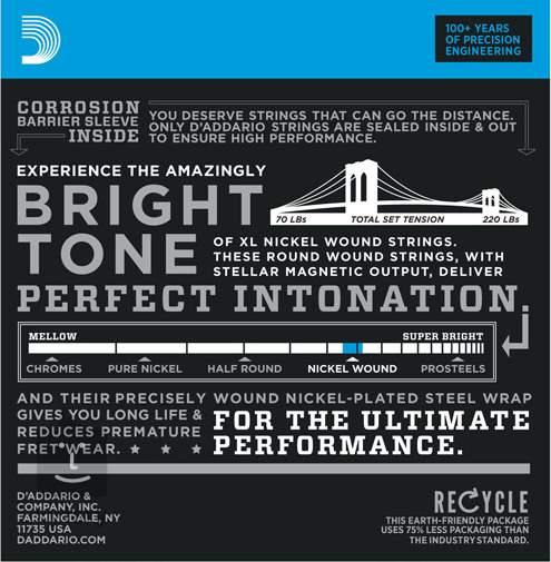 Struny do gitary elektrycznej D’addario XL są od wielu lat bestsellerem w świecie strun gitarowych i prawdopodobnie nigdy nie wyjdą z mody. Jest to sprawdzony przez lata złoty standard, cieszący się popularnością już od 1974 roku, więc na pewno Cię nie zawiedzie. Podstawą jest sześciokątny stalowy rdzeń, który zapewnia doskonałą intonację, długą żywotność i spójne wrażenia podczas gry. Struny owinięte są drutem z niklowanej stali, co nadaje im zrównoważony ton częstotliwościowy odpowiedni dla większości stylów muzycznych. W tym opakowaniu znajdziesz struny do gitary ośmiostrunowej.