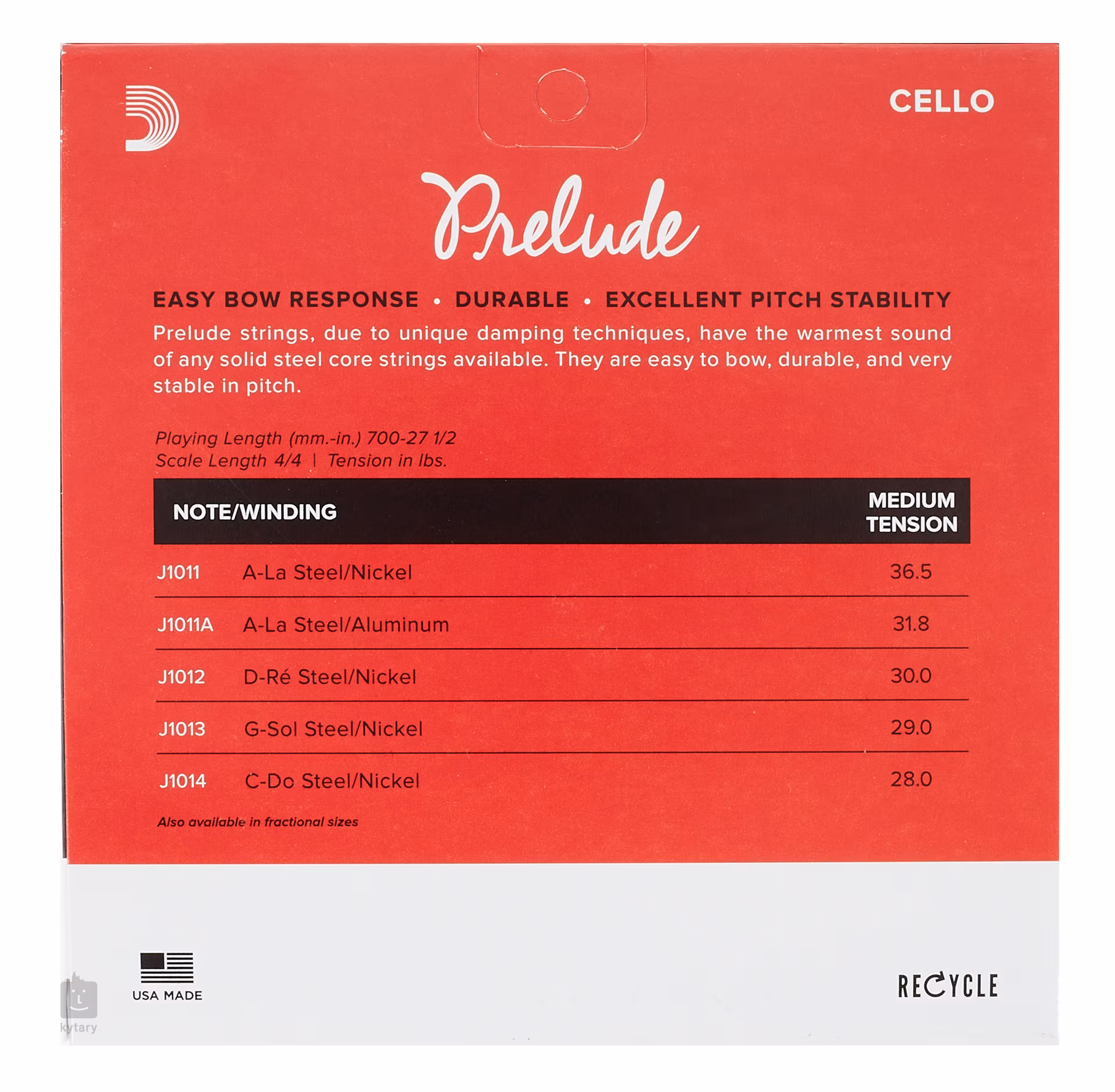Struny wiolonczelowe z serii Prelude mają solidny stalowy rdzeń i są bardzo odporne na zmiany temperatury i wilgotności. Doskonale reagują na smyczkowanie i dają wyjątkowo ciepłe brzmienie jak na ten przedział cenowy. Ten zestaw strun jest idealny dla początkujących graczy i szkół muzycznych.