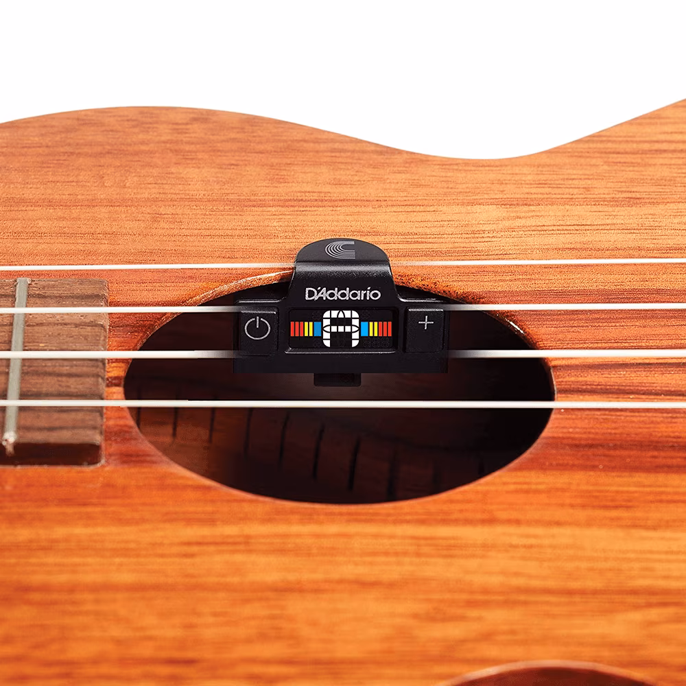 D'Addario Soundhole Tuner to tuner chromatyczny, który wystarczy umieścić w płycie rezonansowej ukulele. Nadaje się do większości modeli we wszystkich rozmiarach. Dzięki niepozornemu umiejscowieniu tuner można pozostawić na instrumencie nawet podczas występu, a także nie trzeba go zdejmować podczas przechowywania instrumentu w futerale.