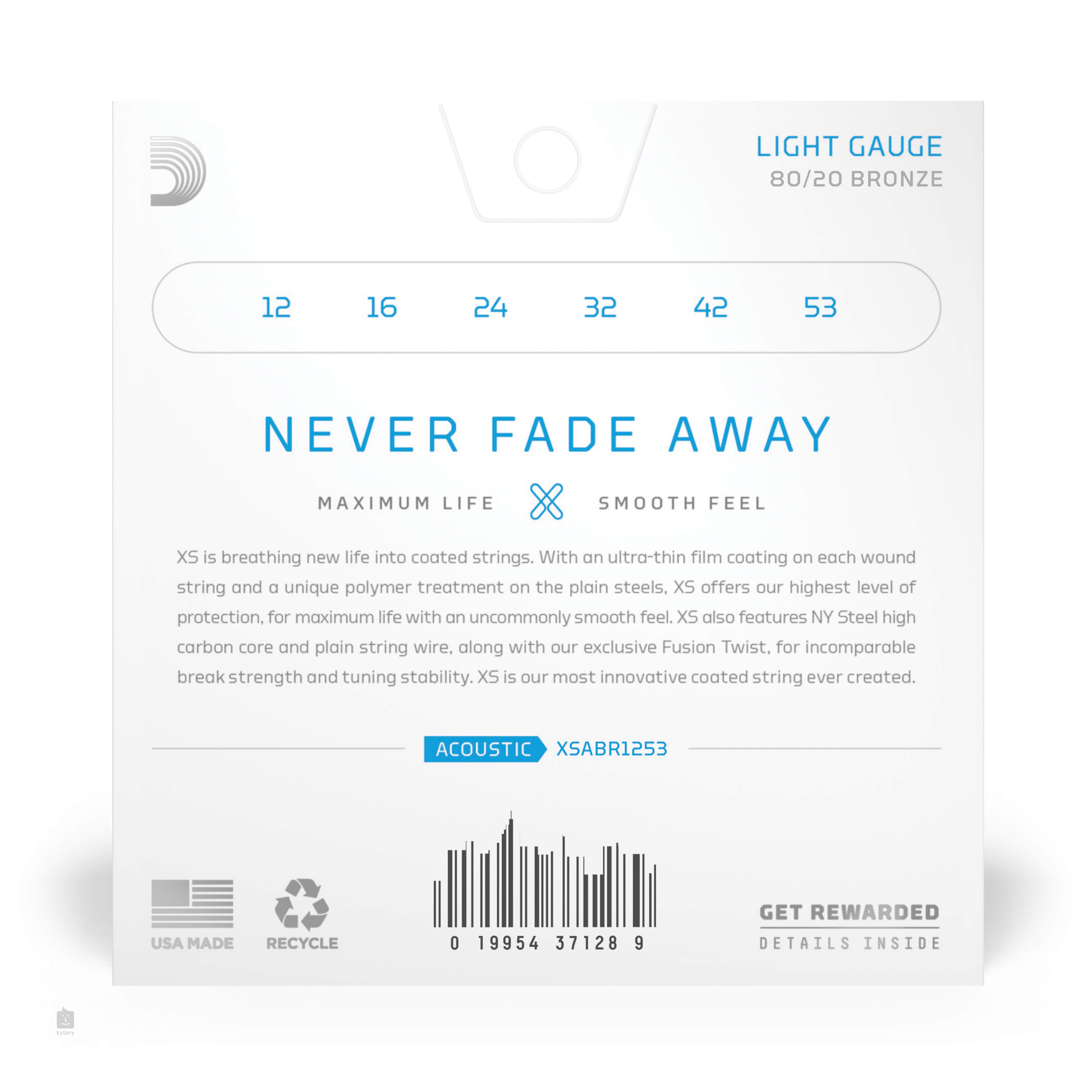 Najwyższa seria strun XS firmy D'Addario stanowi przełom technologiczny w dziedzinie strun powlekanych i należy do najlepszych produktów, jakie można znaleźć w katalogu tej znanej na całym świecie firmy. Struny te łączą w sobie najlepsze cechy serii XT, ale podnoszą poprzeczkę jeszcze wyżej. Niezwykle cienka powłoka zapewnia im niezrównaną trwałość i przyjemnie gładką powierzchnię, nie umniejszając przy tym doskonałych właściwości dźwiękowych, z których słyną struny D'Addario. Dzięki sześciokątnemu rdzeniowi stalowemu o wysokiej zawartości węgla i nawijaniu ze stopu brązu (80/20) oferują jasny i przebijający dźwięk, w którym dominują wysokie częstotliwości. Jednocześnie charakteryzują się doskonałą stabilnością strojenia i wysoką wytrzymałością. Są to po prostu struny najwyższej jakości, które będą Ci służyć przez bardzo długi czas. W tym opakowaniu znajdziesz struny o twardości 12–53, które zapewniają mocne brzmienie i przenikliwość.