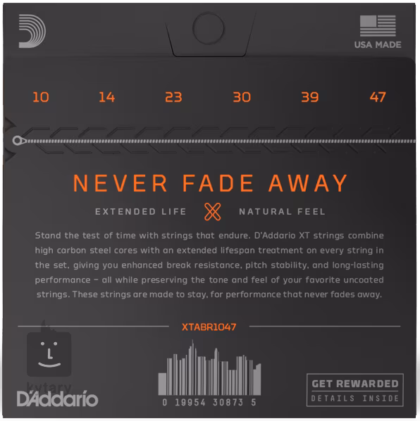 Struny D'Addario XT wytrzymują nawet cztery razy dłużej niż tradycyjne struny niepoddane obróbce, bez utraty jakości dźwięku lub wrażeń z gry. Jednocześnie zapewniają większą odporność na pękanie i lepszą stabilność strojenia. Dzięki sześciokątnemu rdzeniowi stalowemu o wysokiej zawartości węgla i nawijaniu z brązu (80/20) oferują jasny i przenikliwy dźwięk, w którym dominują wysokie częstotliwości. Charakteryzują się również długim sustainem i doskonałą dynamiką. Antykorozyjne opakowanie poszczególnych strun gwarantuje, że dotrą do Ciebie tak samo świeże, jak w momencie opuszczenia fabryki w Nowym Jorku.