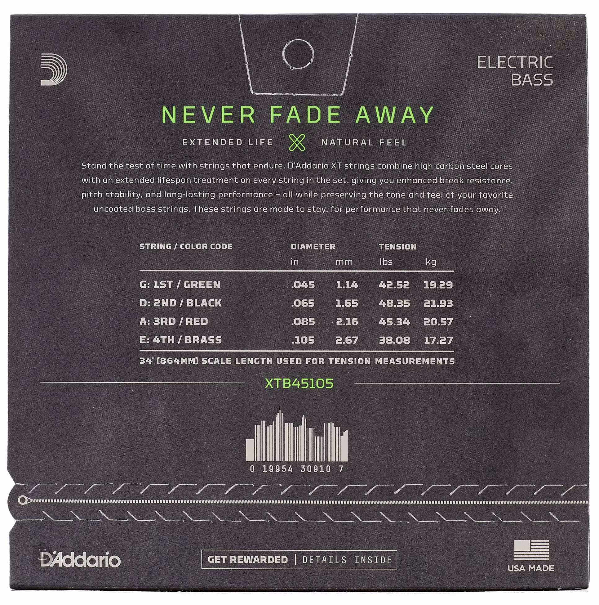 Struny D’Addario XT wytrzymują nawet cztery razy dłużej niż tradycyjne struny niepoddane obróbce, bez utraty jakości brzmienia czy komfortu gry. Dzięki sześciokątnemu rdzeniowi ze specjalnej nowojorskiej stali oraz niklowanemu owijaniu ze specjalną powłoką odpychającą wilgoć, struny te oferują wysoką wytrzymałość i trwałość, doskonałą stabilność strojenia oraz potężne brzmienie z dużą ilością basów, długim sustainem i świetną dynamiką. Innowacyjne, antykorozyjne opakowanie poszczególnych strun gwarantuje ponadto, że dotrą do Ciebie tak samo świeże, jak w momencie opuszczenia nowojorskiej fabryki.