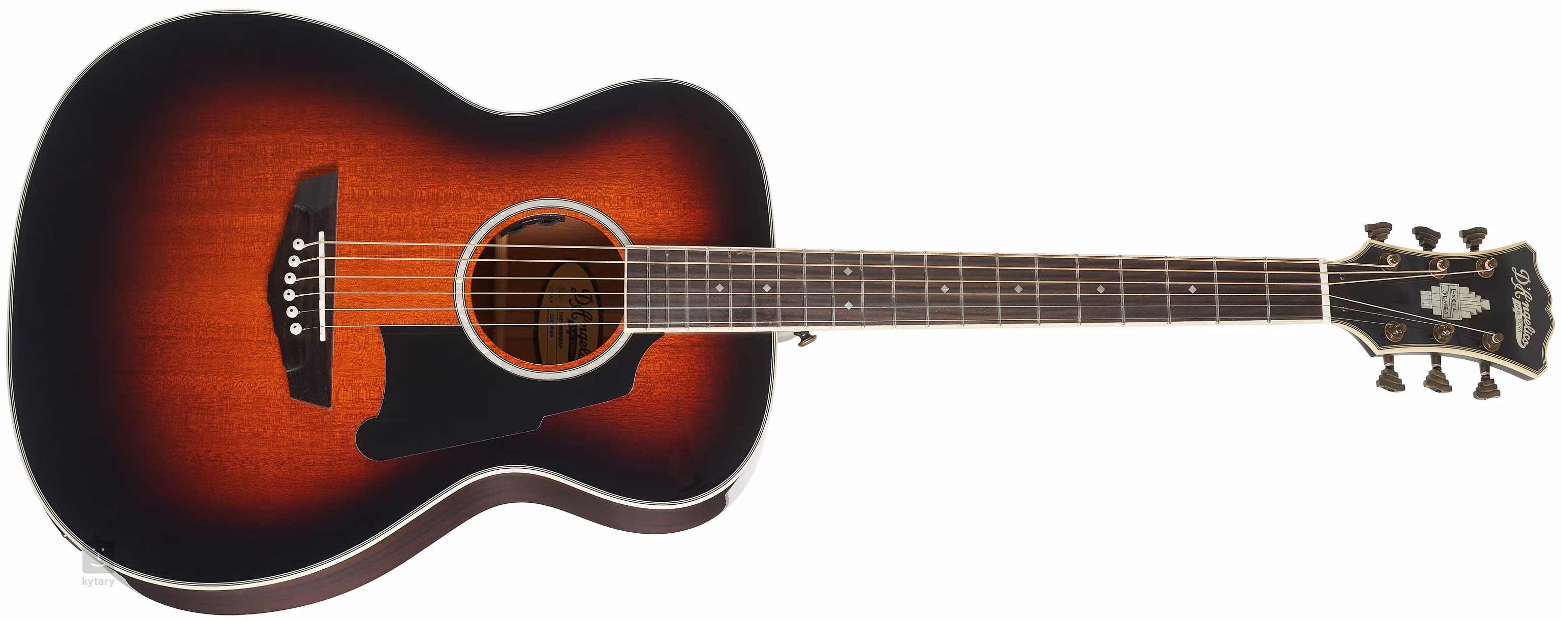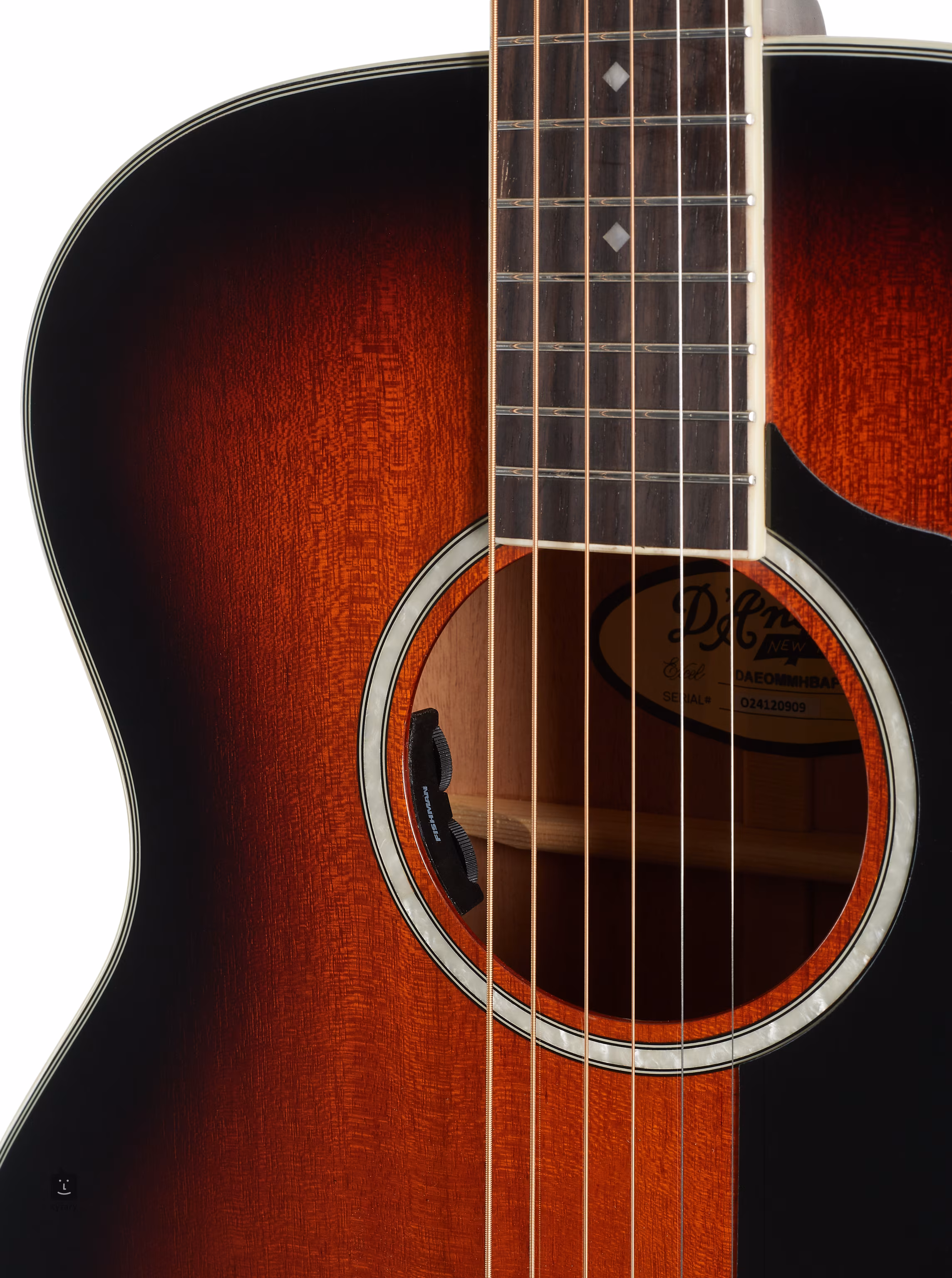 D’Angelico Excel Tammany Mahogany Burst to w pełni masywna gitara elektroakustyczna z bardziej kompaktowym korpusem typu Orchestra (OM), która zachwyca designem łączącym elementy nowoczesnego minimalizmu i bogatego stylu Art Deco oraz bogatym brzmieniem. Korpus gitary jest wykonany z litego mahoniu. Dobre właściwości akustyczne gitary wspiera obniżone żebrowanie X (Scalloped X). Do mahoniowego gryfu o wygodnym profilu Slim „C” i satynowym wykończeniu przyklejony jest palisandrowy podstrunnica z dwudziestoma progami rozmiaru Medium Jumbo. Orientację na podstrunnicy ułatwiają perłowe znaczniki pozycji w kształcie małych diamentów (Mother-of-Pearl). Struny są zamocowane przez siodełko i zerowy próg z kości w eleganckich mechanizmach strojących Stairstep Wave i palisandrowym mostku. Szlachetny wygląd instrumentu podkreśla rozeta złożona z czarnych i perłowych pierścieni, wielowarstwowa lamówka korpusu i główki, osprzęt w kolorze Antique Bronze, logo firmy i inkrustacja Excel Series na główce, stylowa hebanowa osłona wzmocnienia i czarna płytka ochronna Scalini. Wysokiej jakości brzmienie akustyczne gwarantuje elektronika Fishman Presys VT z regulatorami głośności i tonu w otworze rezonansowym instrumentu. Gitara jest dostarczana w pokrowcu (gig bag).