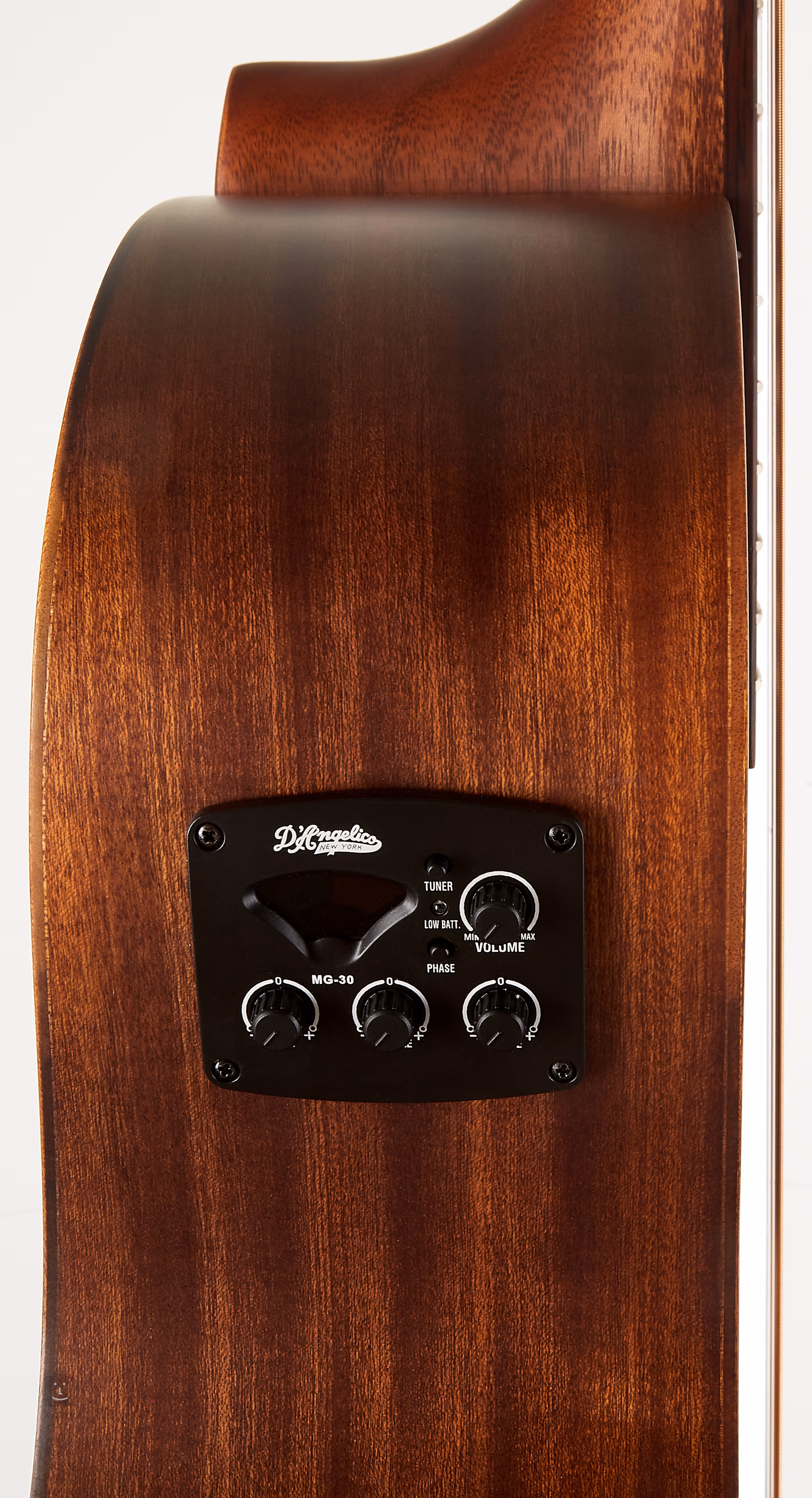 Za nagłośnienie odpowiada wbudowany w szyjkę preamp D'Angelico MG-30.
