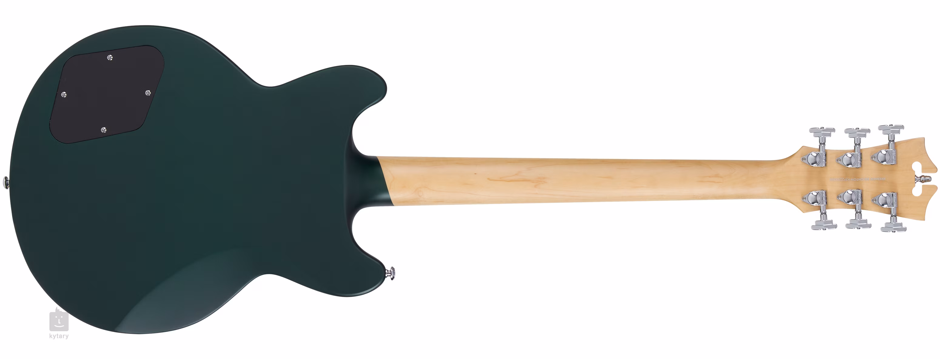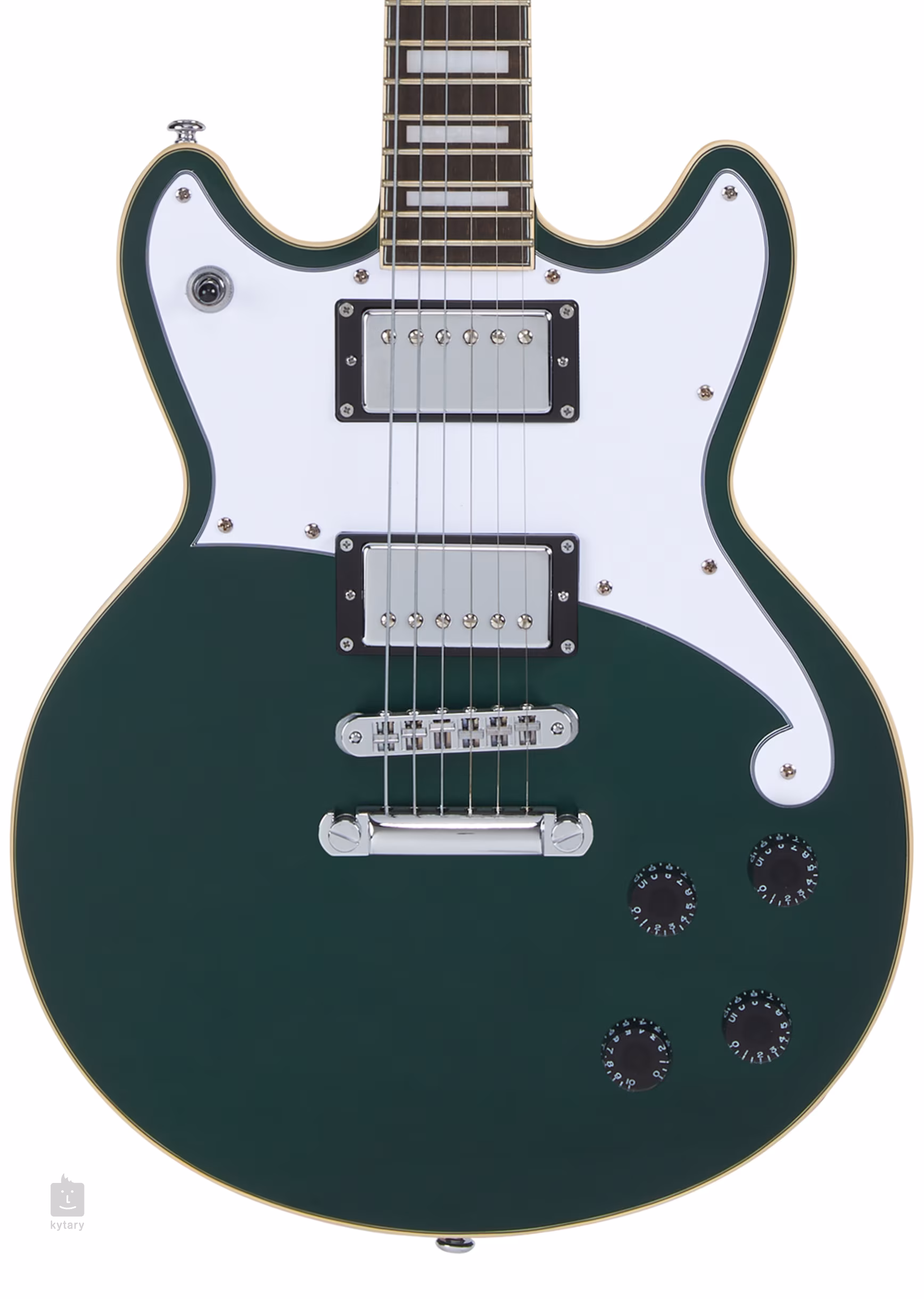 Premier Brighton Sherwood Green to gitara elektryczna o stylowym wyglądzie z podwójnym wycięciem. Węższy limonkowy korpus z głębszym wycięciem na brzuchu oferuje maksymalny komfort gry dzięki ergonomicznemu kształtowi i mniejszej wadze. Klonowy gryf jest przyklejony do podstrunnicy ovangkol wyposażonej w dwadzieścia dwa niklowo-srebrne progi pakfong w rozmiarze Medium Vintage. Orientację podstrunnicy ułatwiają bloki pozycjonujące wykonane z imitacji masy perłowej.