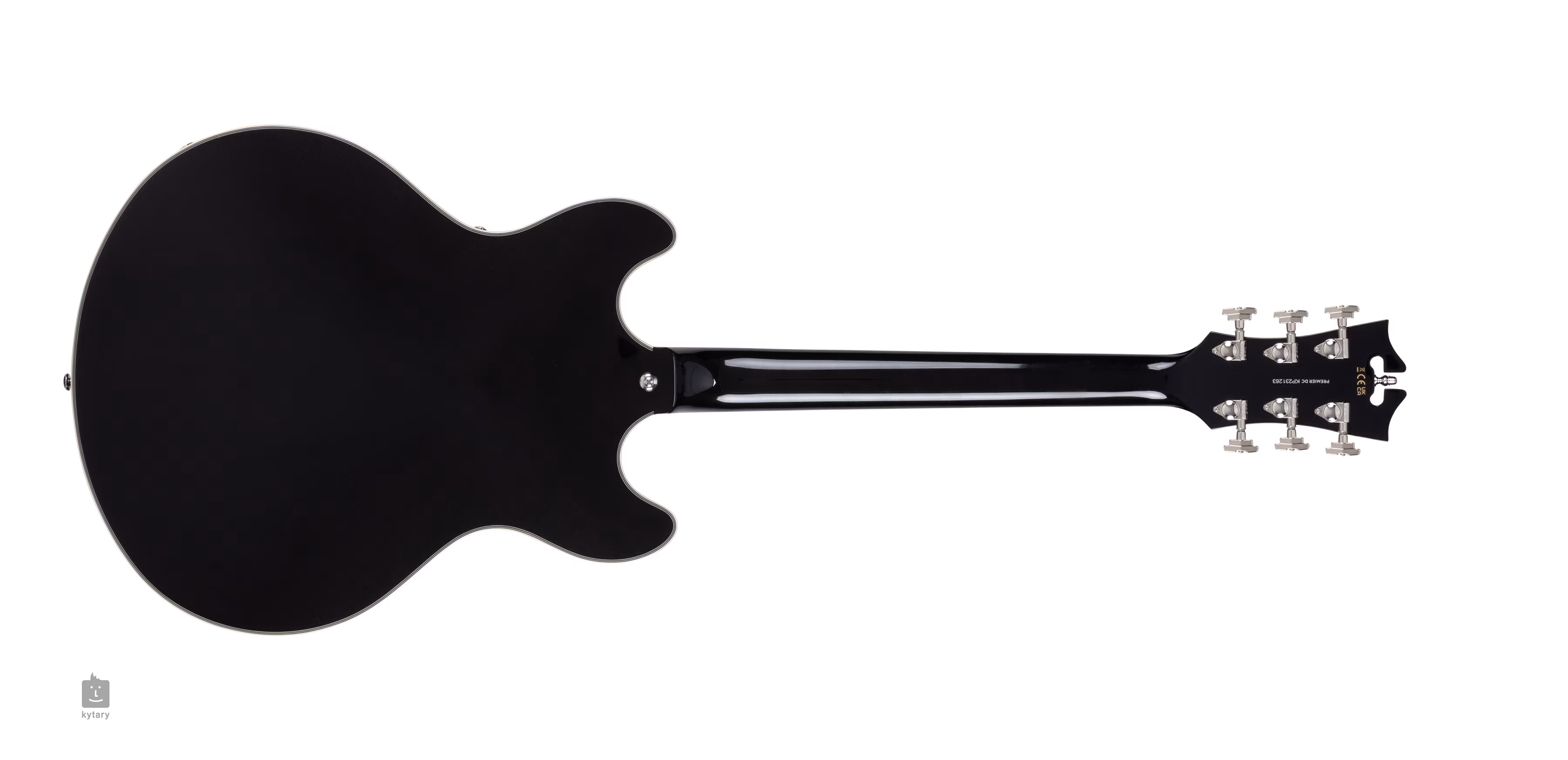 Konstrukcja modelu PREMIER DC Black Flake typu half-bow wykonana jest z laminowanego klonu i bloku centralnego. Klonowa szyjka jest przyklejona do podstrunnicy pau ferro wyposażonej w dwadzieścia dwa progi Medium Vintage. Wąski profil C szyjki zapewnia płynny ruch palców na podstrunnicy i wygodne wyrównanie podstrunnicy, a bloki pozycyjne wykonane z imitacji masy perłowej ułatwiają orientację na podstrunnicy.