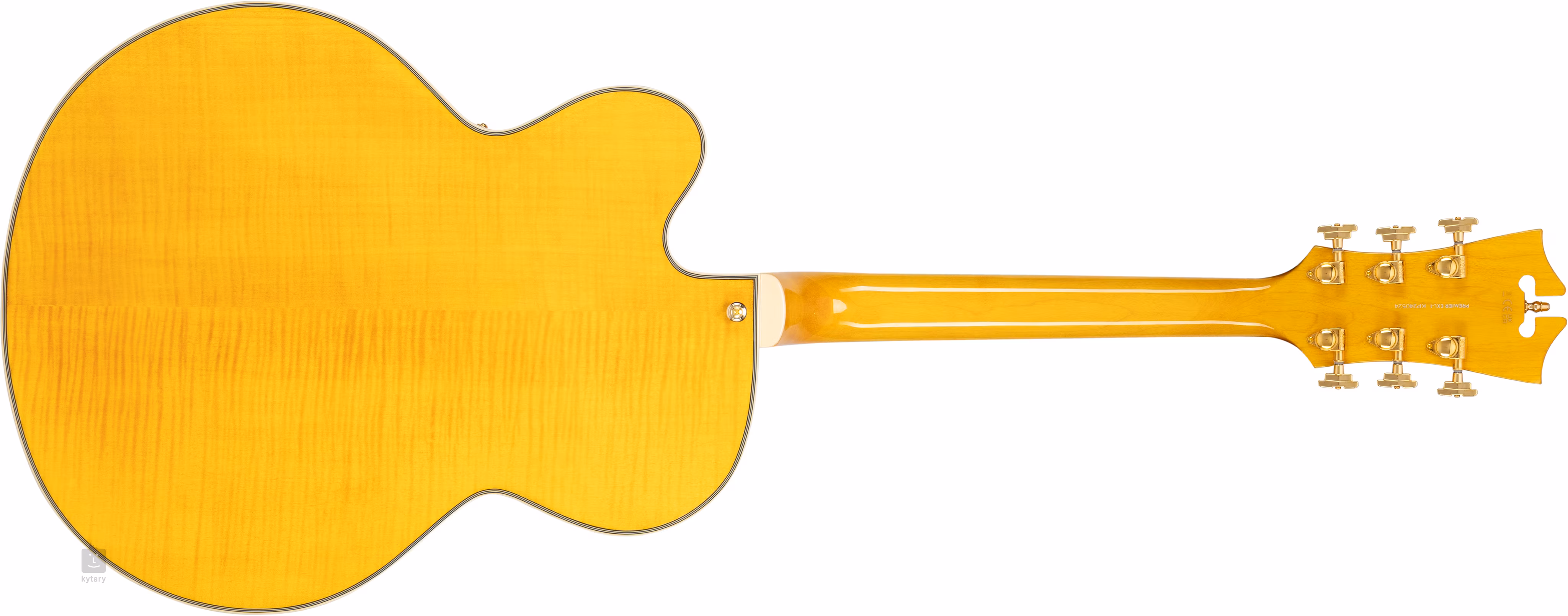 D'Angelico Premier EXL-1 Honey Blonde to mosiężna gitara inspirowana oryginalnym projektem Johna D'Angelico z pojedynczym nacięciem. Korpus o szerokości siedemnastu cali oferuje ciepłe, naturalne brzmienie akustyczne, odpowiednie do grania akompaniamentów rytmicznych i solówek. Tył i boki z klonu płomienistego są wykończone błyszczącym lakierem. Klonowy gryf o profilu "C" jest przyklejony do owalnej podstrunnicy z dwudziestoma dwoma progami Medium Vintage. Orientację podstrunnicy ułatwiają bloki pozycjonujące wykonane z imitacji masy perłowej.
