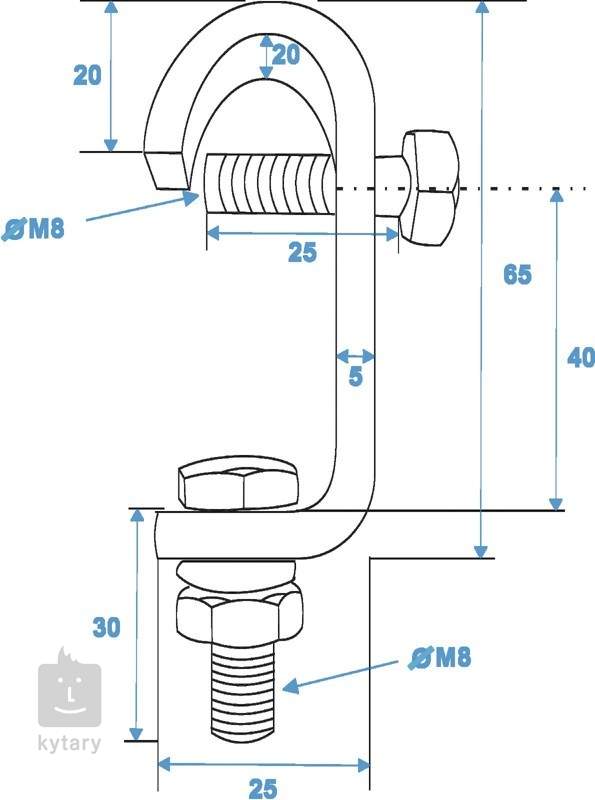 Ten poręczny stalowy hak służy do zawieszania świateł i innych efektów na dekoracyjnej konstrukcji wsporczej. Jego udźwig wynosi 20 kg (maksymalne obciążenie robocze). Hak jest przeznaczony do rur o średnicy 15-16 mm i posiada gwint M8.