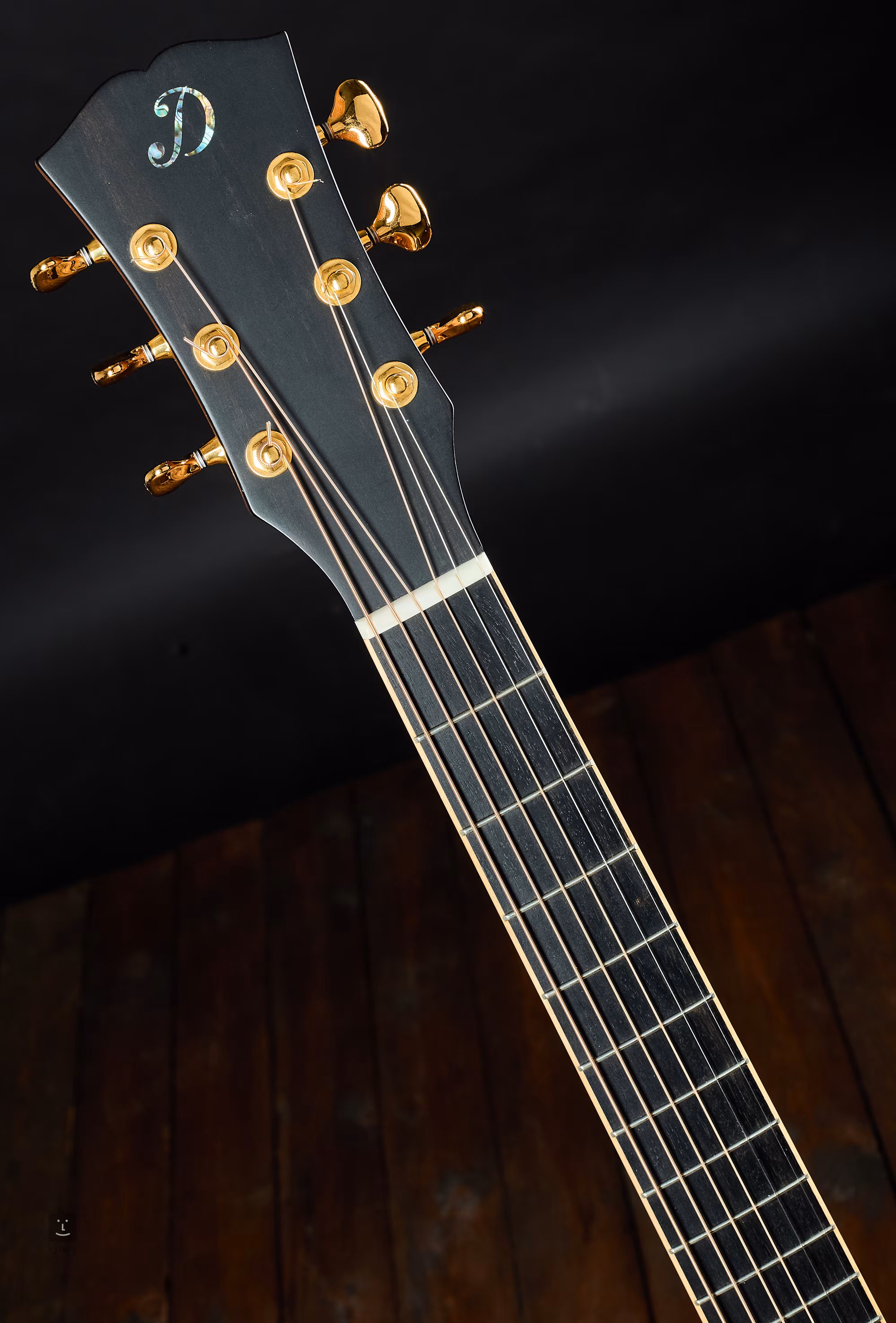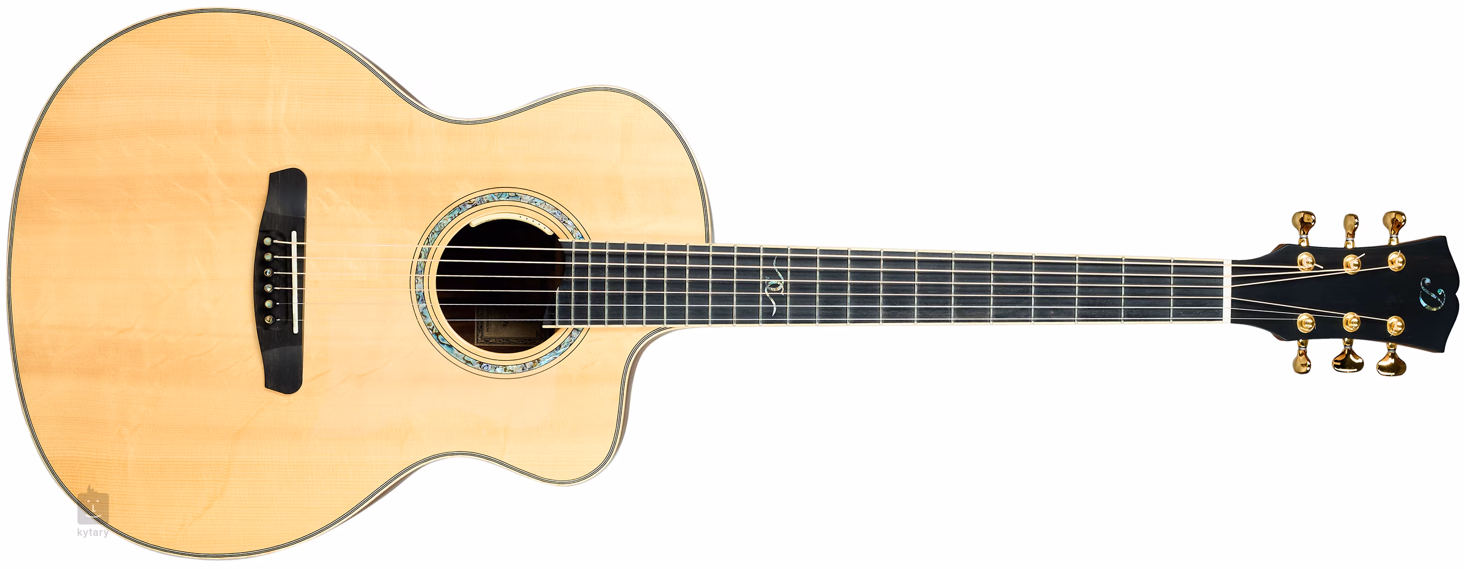 Kształt korpusu Grand Auditorium. Solidne niskie i średnie tony, doskonałe do techniki palcowej i pickingu; krótko mówiąc, wszechstronny instrument na każdą okazję. Wycięcie ułatwia dostęp do wyższych pozycji.