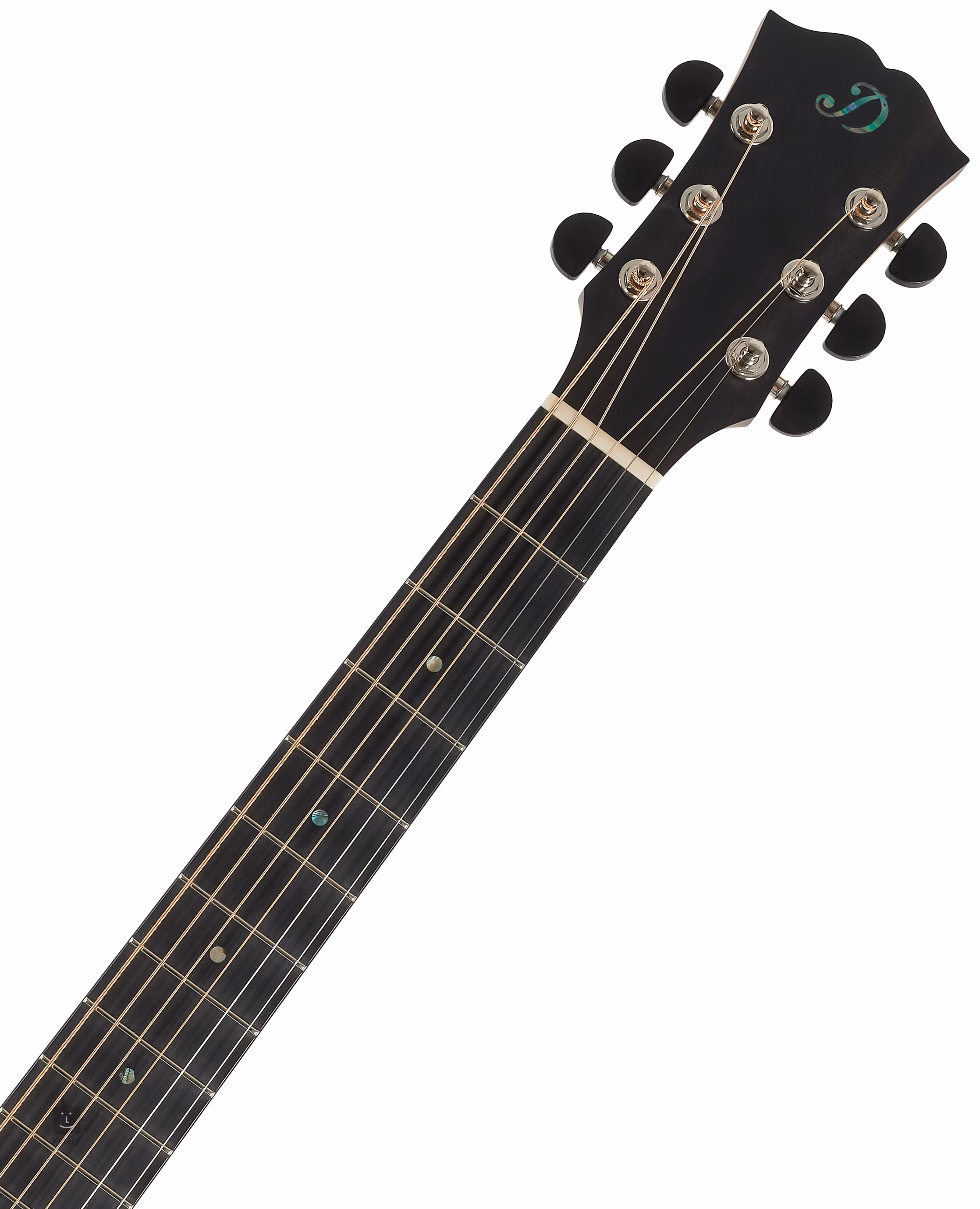 Do szyjki z drewna nato, nazywanego „eastern mahogany” ze względu na podobne właściwości, przyklejono podstrunnicę z ebonizowanego twardego drewna. Stabilność strojenia gwarantuje mocowanie strun przez zerowy próg z kości w mechanizmach marki Grover i mostku z twardego drewna. Ładne wykończenie podkreśla subtelna kolorystyka „Lightburst” przedniej płyty oraz detale w postaci mahoniowej obwódki korpusu, wkładki górnej i tylnej płyty w wzorze jodełki (Herringbone), ozdobnej rozety, perłowego logo firmy na główce (Abalone) oraz perłowych kropek na podstrunnicy.