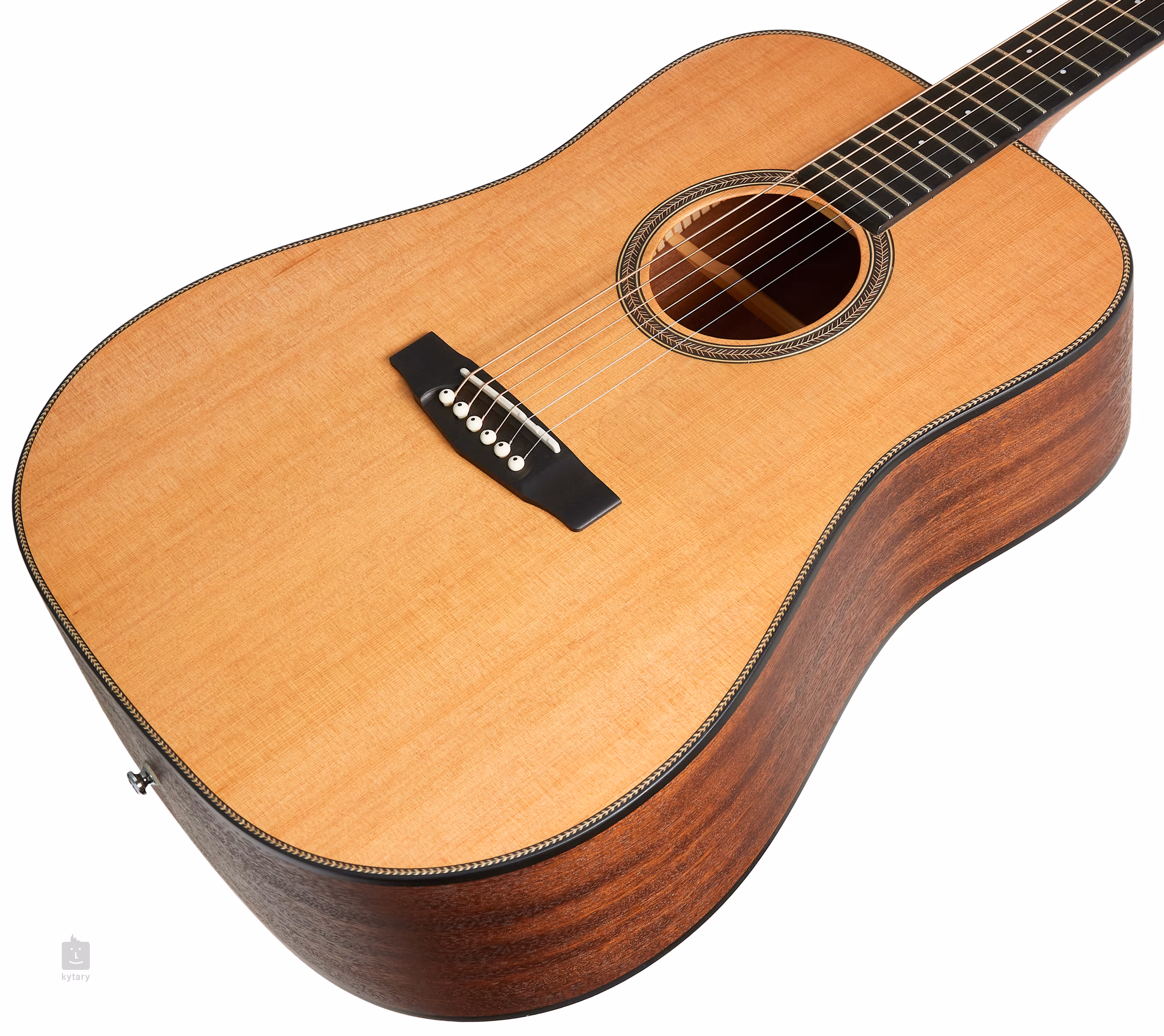 Dowina Rustica D z serii Antique to gitara akustyczna o popularnym "westernowym" kształcie korpusu Dreadnought. Przód gitary wykonano z litego cedru, a tył i boki z laminowanego mahoniu.