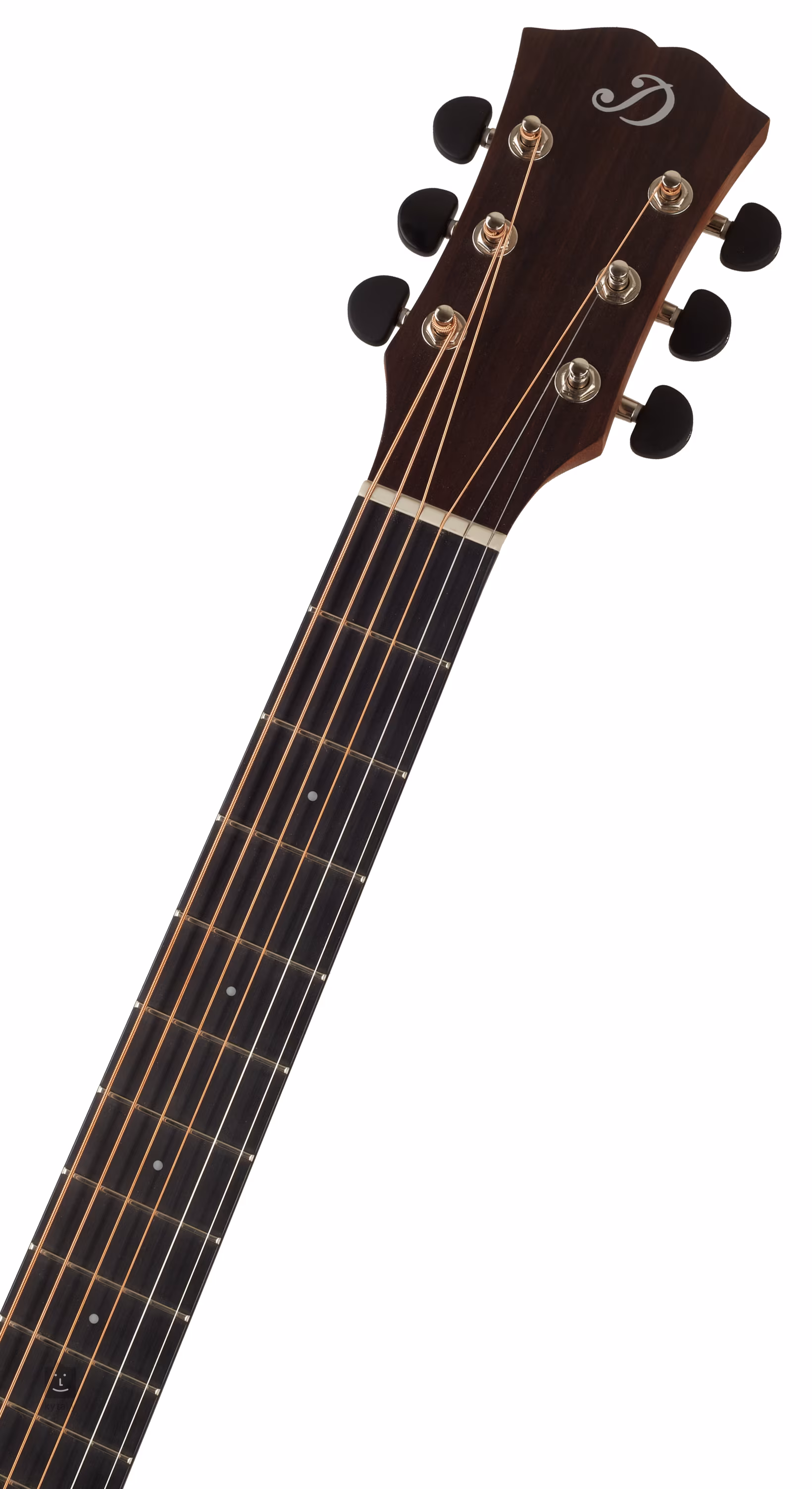 Dowina Rustica GAE z serii Antique to gitara elektroakustyczna typu Grand Auditorium, którą docenią w równym stopniu gitarzyści preferujący grę techniką palcową i pickami. Przód gitary wykonano z litego cedru, natomiast tył i boki z laminowanego mahoniu.