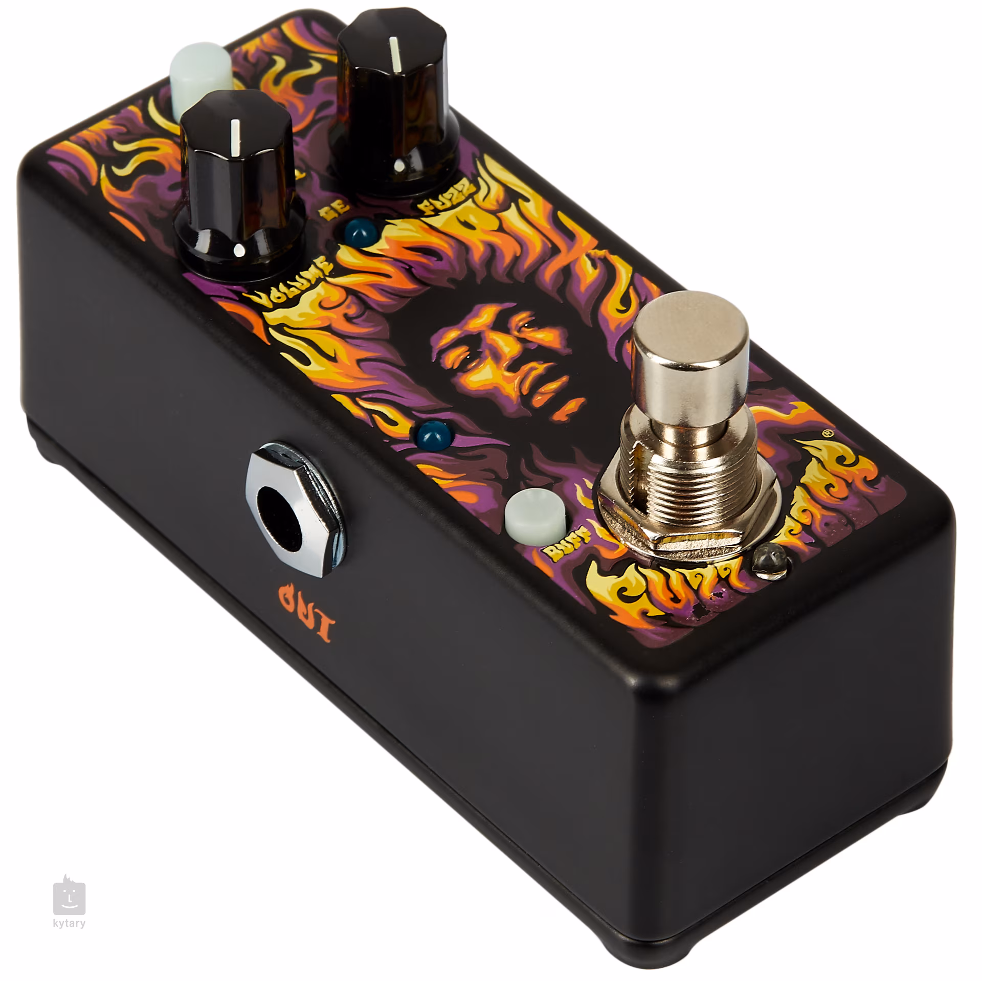 This pedal combines the two different flavors of Fuzz Face Distortion tones—aggressive silicon-based crunch and smooth germanium-based saturation—that Jimi Hendrix used throughout his career, all in a mini MXR housing modern appointments such as a status LED, true-bypass switching, and a 9-volt power jack. Emblazoned with the trippy, kaleidoscopic designs of award-winning UK-based design crüe ILOVEDUST.