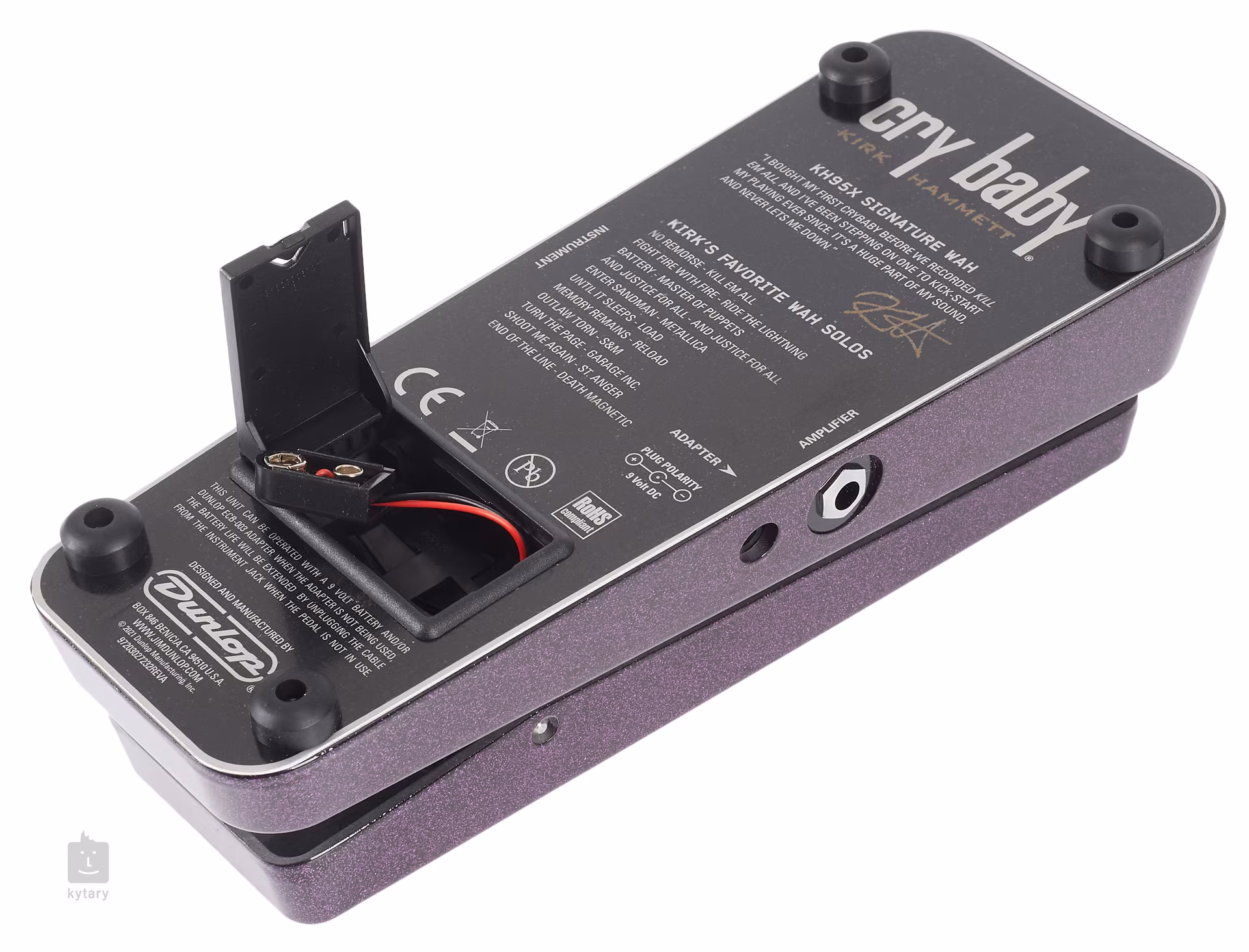 Pudełko zostało zaprojektowane tak, aby można je było łatwo zintegrować ze ścieżką sygnału. Posiada jedno monofoniczne wejście instrumentalne i jedno monofoniczne wyjście. Do zasilania używany jest standardowy zasilacz 9V (brak w zestawie) lub baterie 9V. Efekt jest podłączony jako hardwire bypass, zapewniając autentyczne brzmienie z lat 60-tych, które sprawia, że Cry Baby jest tak charakterystyczny. Pedał ekspresji jest ozdobiony stylowym podpisem Kirka Hammetta. Cała elektronika jest umieszczona w solidnej metalowej obudowie.