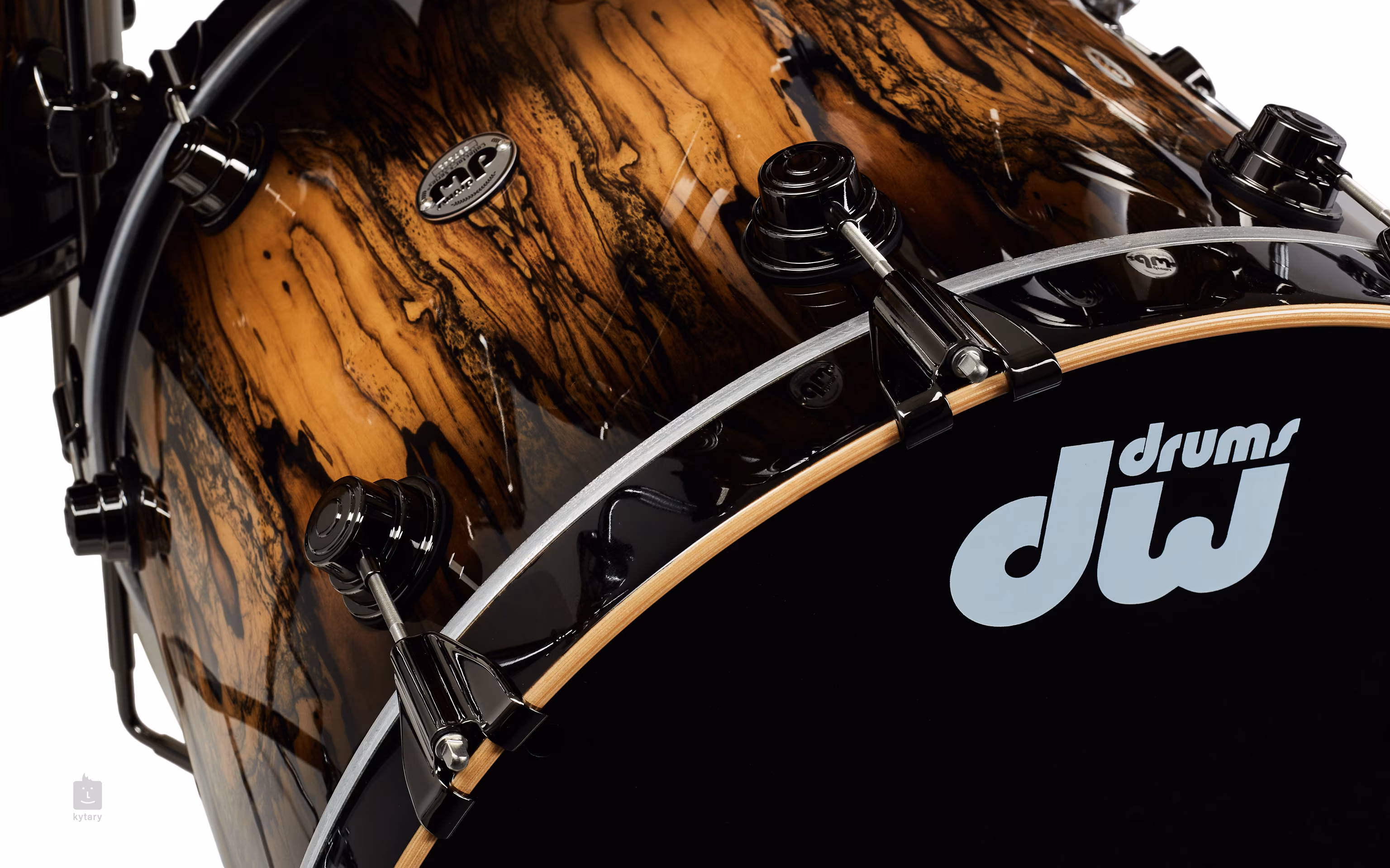DW Collector's Natural to Black Burst over Royal Ebonite to wysokiej klasy profesjonalny zestaw dla najbardziej wymagających graczy wykonany z klonu kanadyjskiego. Dźwięk jest tak charakterystycznie czysty i przenikliwy. Opatentowany Suspension Tom Mount pozwala na maksymalny rezonans drewna, jednocześnie umożliwiając stabilność i bezpieczne zawieszenie. Śruby tuningowe z gęstszym nawarstwieniem gwintu (do 20% więcej niż standardowe śruby) pozwalają na maksymalną kontrolę nad brzmieniem zestawu. Ręcznie wykańczane wykończenie to jedna z cech, które stanowią o nazwie DW. W tym przypadku jest to specyficzne wykończenie Toasted Almond w kolorze Natural Burst. Okucia są w całości chromowane. Każdy bęben jest sygnowany przez Johna Gooda.