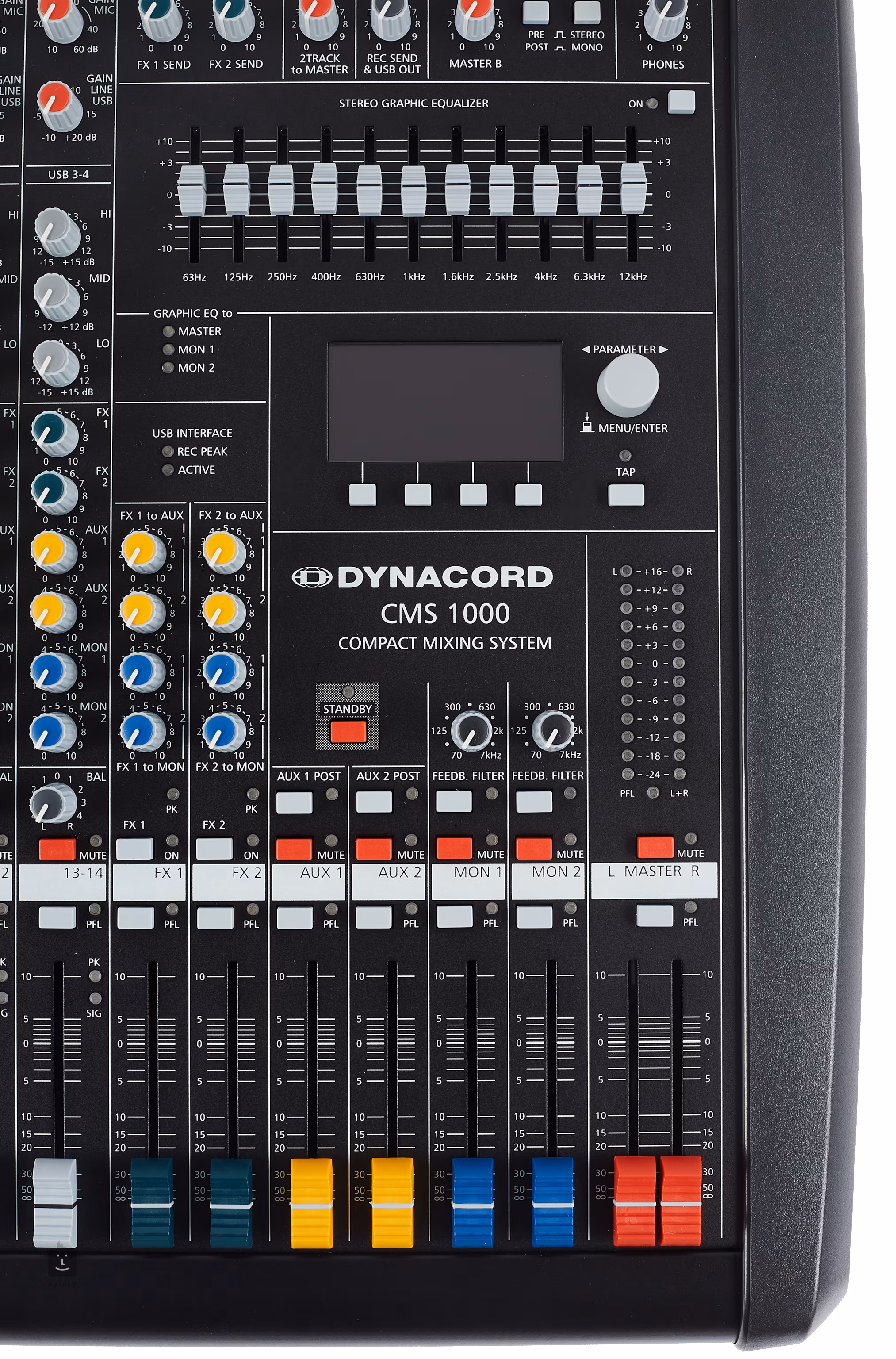 Kompaktowy dziesięciokanałowy mikser odpowiedni do nagłaśniania kameralnych koncertów, konferencji, imprez towarzyskich itp. CMS 1000-3 zawiera również dwa regulowane efekty cyfrowe (Reverb/Delay), w tym sto fabrycznych i dwadzieścia presetów użytkownika. Ponadto mikser może służyć jako interfejs audio USB z możliwością nagrywania do czterech ścieżek w jakości 24 bit/96 kHz.