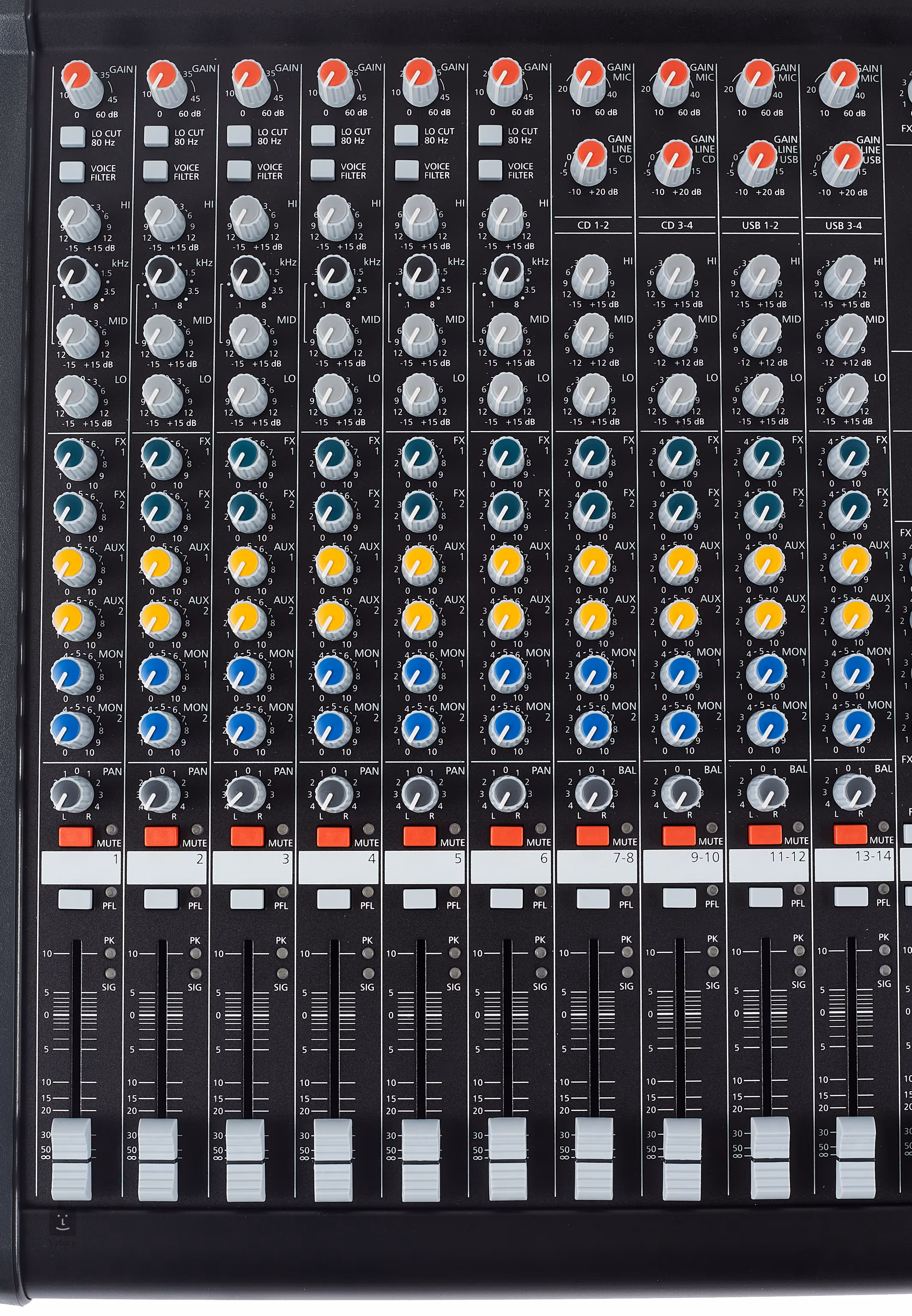 Główny panel sterowania zawiera dziesięć wejść mikrofonowych i liniowych, gniazda RCA, wyjście słuchawkowe, porty MIDI lub wyjścia XLR do monitorów scenicznych i PA. Oprócz elastycznej łączności, użytkownik ma do dyspozycji trzypasmowy korektor graficzny, jedenastopasmowy korektor graficzny, czytelny wyświetlacz, Voice Filter lub Low Cut Filter. W zestawie znajduje się plastikowa pokrywa z uchwytem ułatwiająca transport między produkcjami.