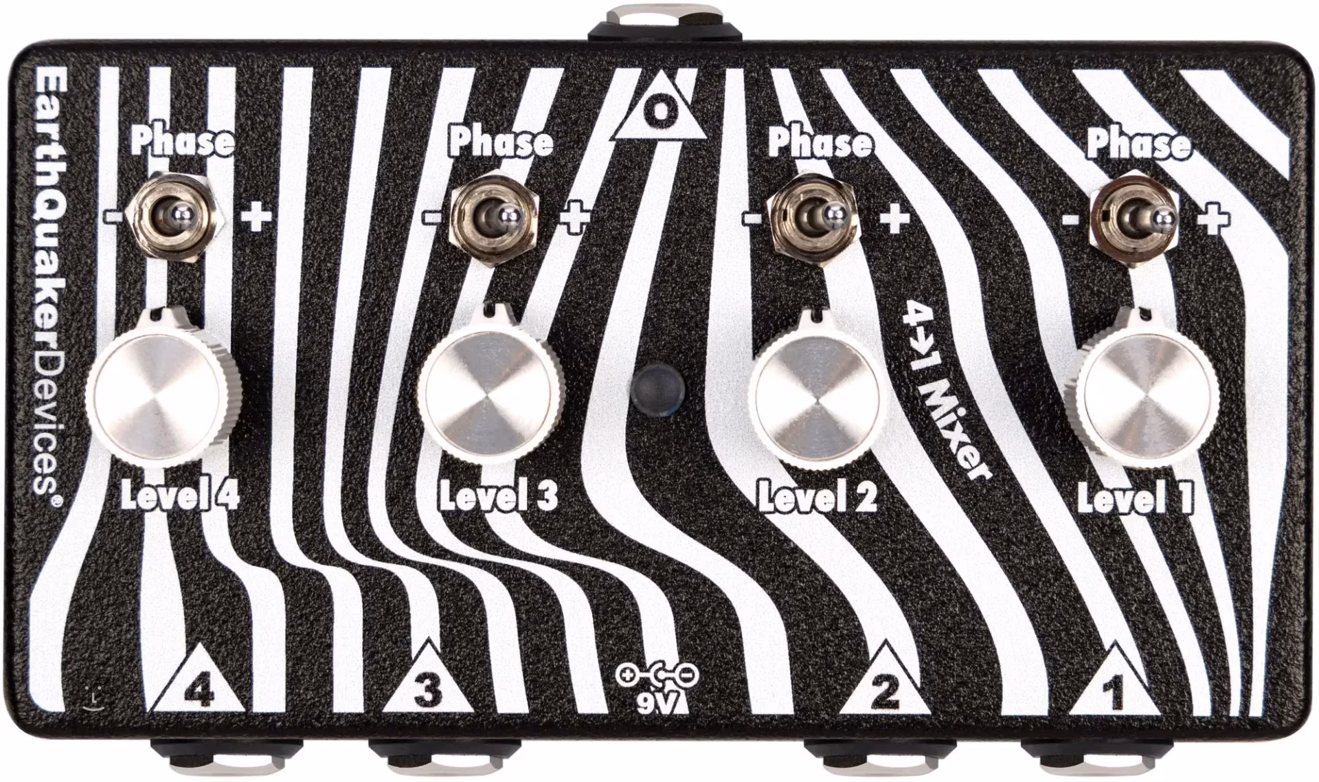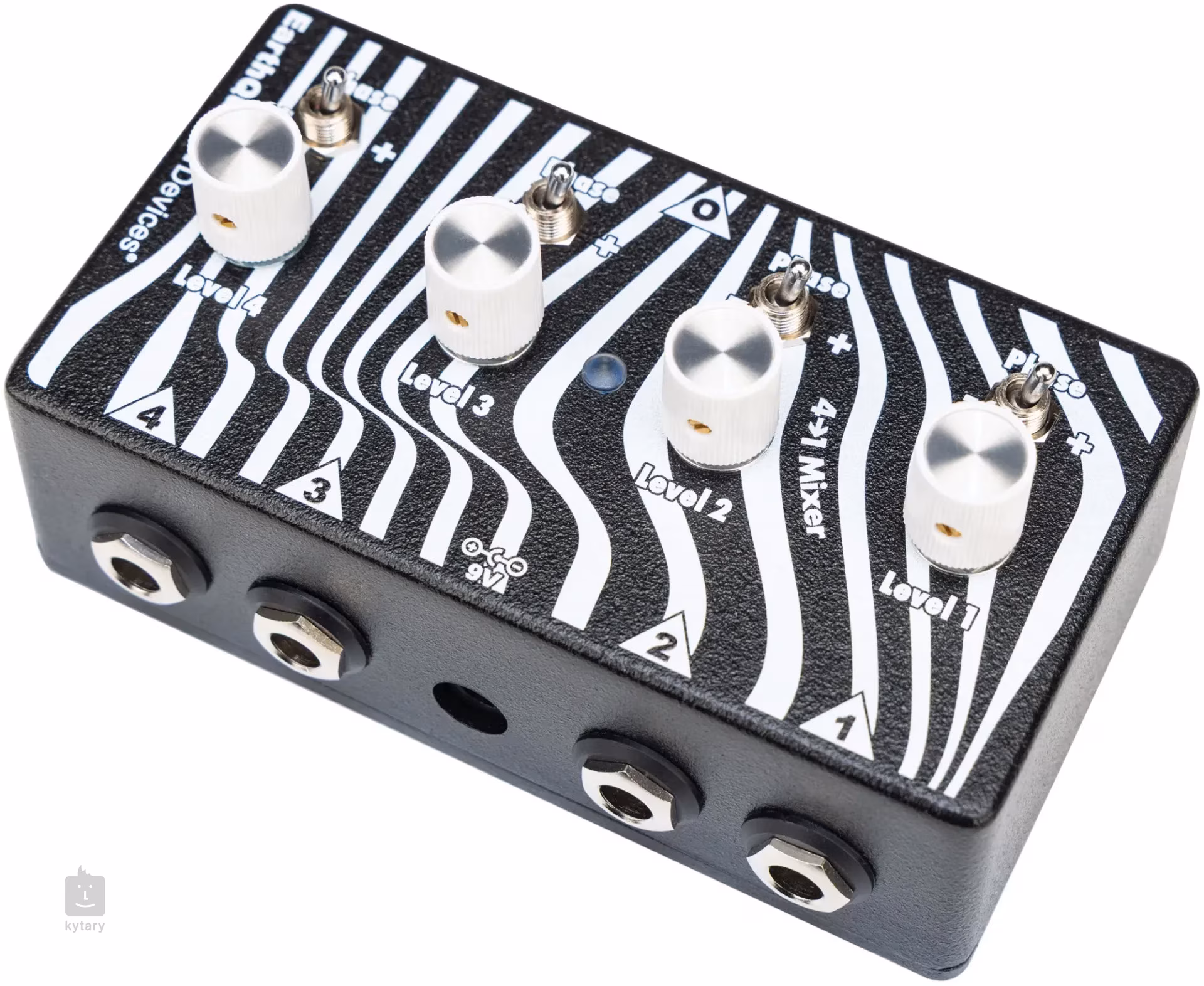 Poręczne pudełko gitarowe Four to One od EarthQuaker Devices zawiera wysokiej klasy czterokanałowy mikser, który może obsługiwać do czterech ścieżek sygnału do jednego wyjścia. Został on zaprojektowany przede wszystkim do użytku w połączeniu z rozdzielaczem gitarowym One to Four, umożliwiając utworzenie czterech równoległych ścieżek sygnału. Można go jednak również używać do wielu innych zastosowań, w których konieczne jest połączenie czterech różnych ścieżek sygnału w jedno wyjście. Mikser obsługuje podłączenie gitar, gitar basowych, syntezatorów, efektów, perkusji elektronicznej i wielu innych urządzeń. Wyobraźnia nie ma granic!