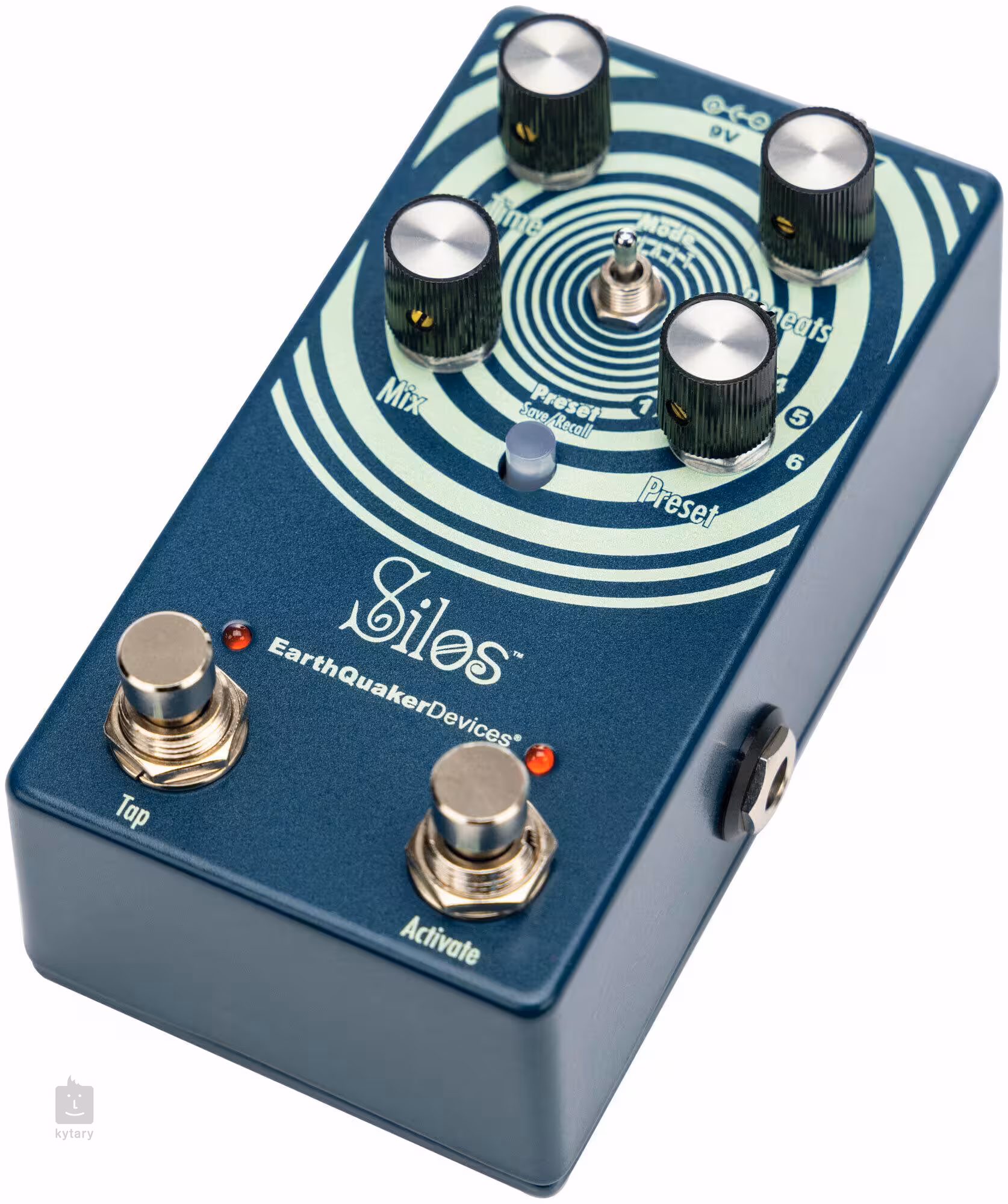 Efekt pedałowy EarthQuaker Devices Silos to proste i praktyczne rozwiązanie dla wszystkich muzyków, którzy często zmagają się z tym, którego z ich ulubionych efektów delay użyć lub jak zmieścić je wszystkie w pedalboardzie. Oferuje on trzy efekty delay (delay analogowy, delay cyfrowy i echo taśmowe) w jednej kompaktowej obudowie, możliwość zapisania i przywołania sześciu ulubionych ustawień jako presetów w dowolnym momencie, funkcję tap tempo oraz wyjście na zewnętrzny pedał ekspresji (brak w zestawie) do kontroli w czasie rzeczywistym poszczególnych parametrów efektu delay. A wszystko to można skonfigurować i kontrolować za pomocą czterech głównych elementów sterujących, trójpozycyjnego przełącznika typu efektu, przycisku Save/Recall i dwóch przełączników nożnych - bez grzebania w menu.