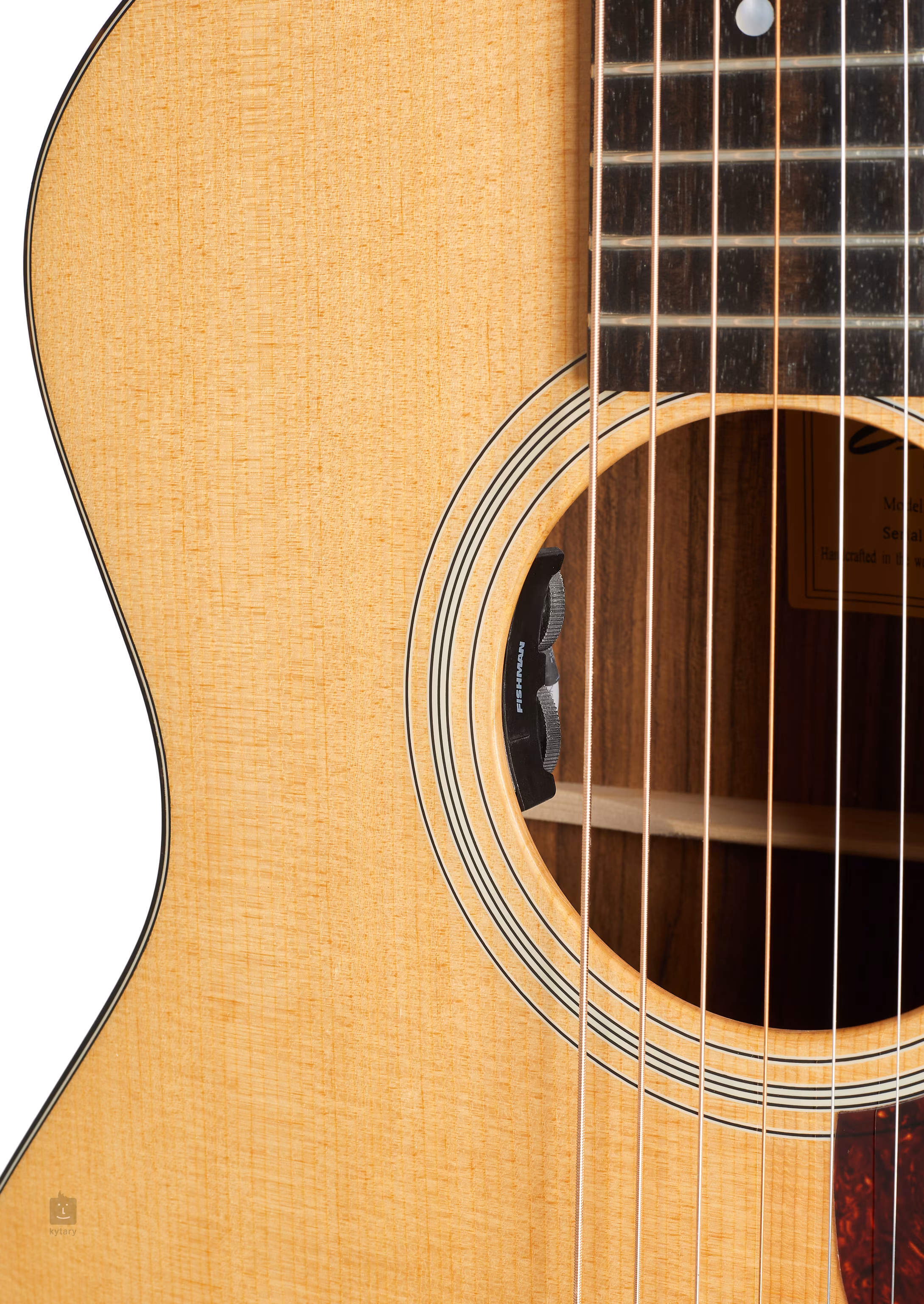 Struny są trzymane w niklowych maszynkach do strojenia i hebanowej podstrunnicy za pośrednictwem podstrunnicy z kości. Ładne wykonanie podkreśla dwustronny korpus i pickguard z imitacji skorupy żółwia oraz logo firmy z masy perłowej na główce.