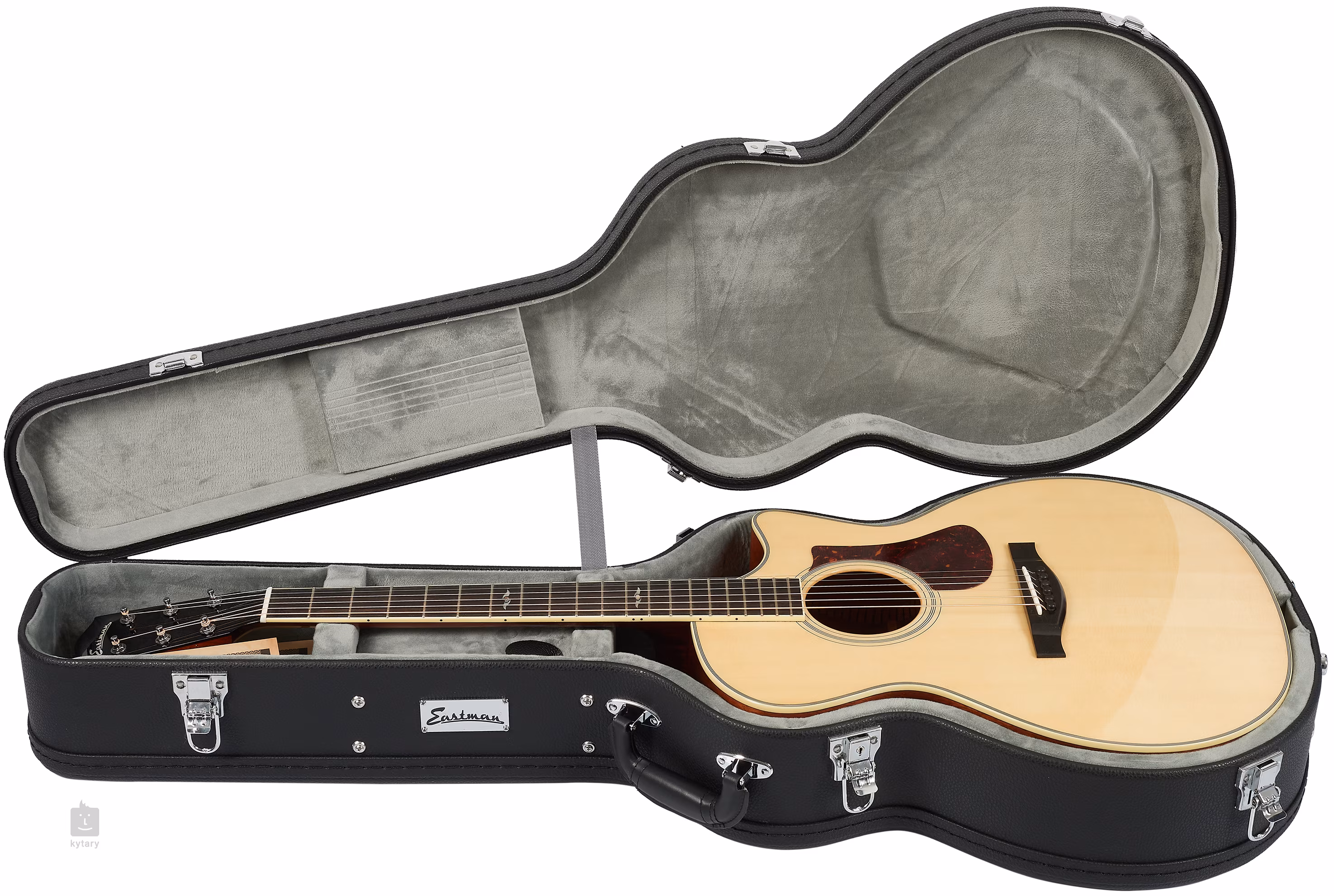 Eastman AC322CE to w pełni masywna gitara elektro-akustyczna w stylu Grand Auditorium. Przód gitary wykonany jest ze świerku Sitka, a tył i boki z mahoniu. Hebanowa podstrunnica z 20 progami jest przyklejona do mahoniowej szyjki o przyjemnym profilu "C".