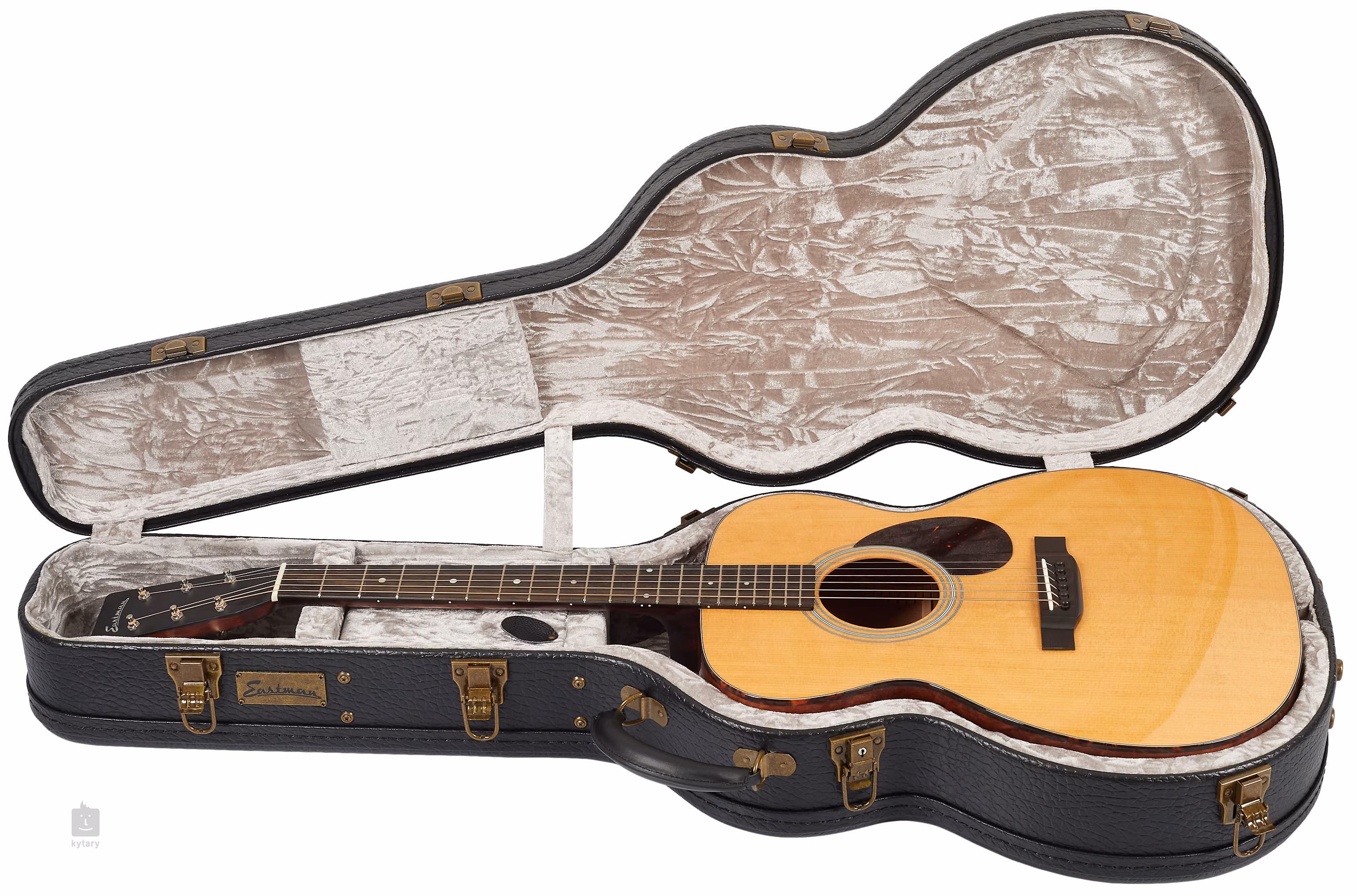 Przód gitary akustycznej Eastman Orchestra E10OM-TC wykonano z termoutwardzalnego świerku Adirondack, a tył i boki z mahoniu. Hebanowa podstrunnica z 20 progami jest przyklejona do mahoniowej szyjki o przyjemnym profilu "C". Rezonans wierzchu jest wspierany przez ręcznie redukowane ożebrowanie (Scalloped X), a orientację na podstrunnicy ułatwiają kropki pozycyjne z masy perłowej.