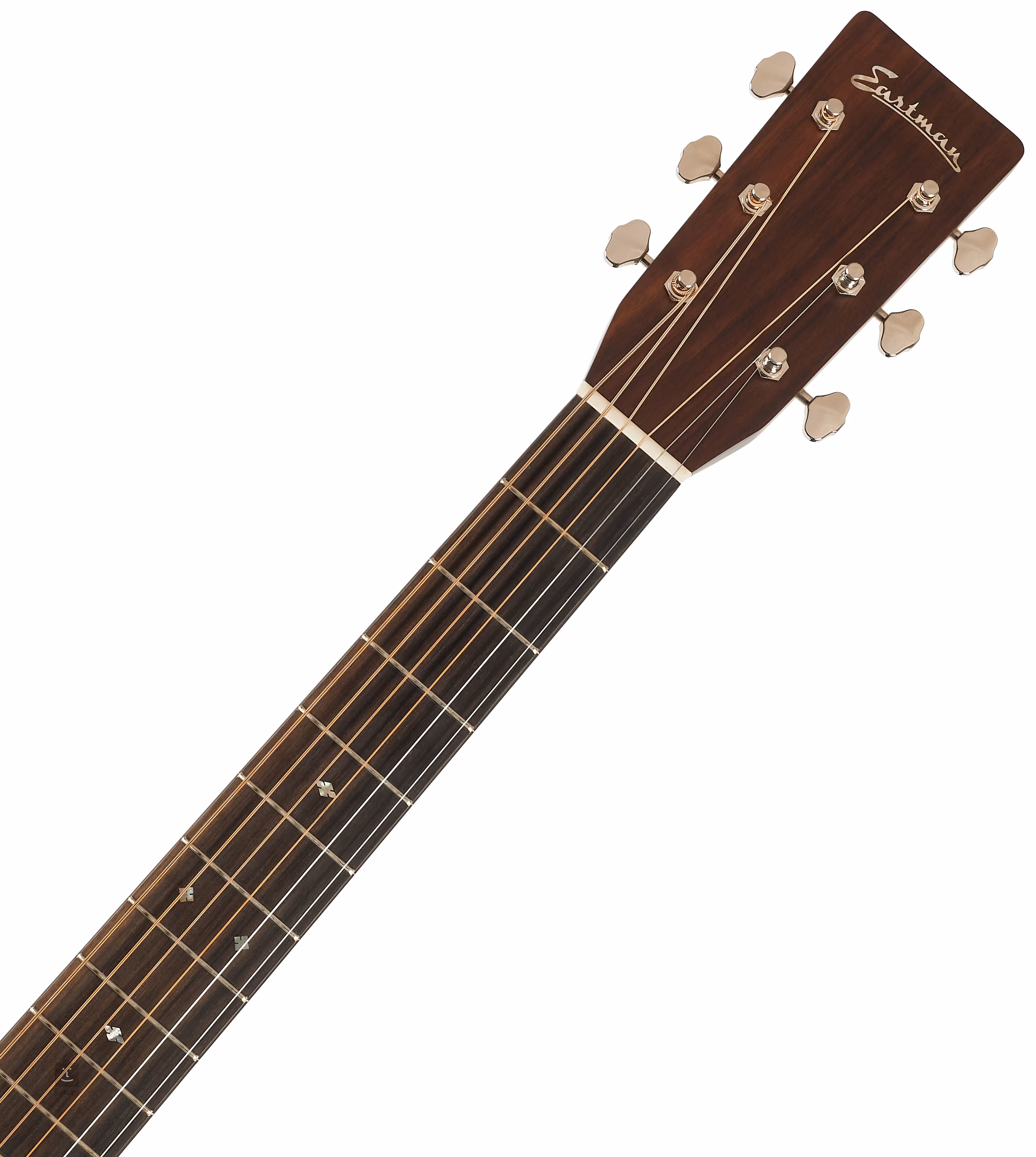 Marka Eastman Strings została założona w 1992 roku przez chińskiego flecistę Qiana Ni po ukończeniu Boston University School of Music. W ciągu trzech dekad portfolio firmy rozszerzyło się o gitary akustyczne, półakustyczne i elektryczne (Eastman Guitars), a wraz z nim wzrosła renoma marki, dzięki czemu wśród muzyków współpracujących z firmą można znaleźć takie osobistości jak James Dean Bradfield (Manic Street Preachers), Adrian Utley (Portishead) czy Lee Ranaldo (Sonic Youth). W przypadku instrumentów Eastman można polegać na najwyższej jakości wykonaniu, które przejawia się w takich elementach i technikach, jak ręcznie obniżone żebrowanie lub indywidualne strojenie przedniej płyty instrumentu. Eastman E8D-TC to w całości masywna gitara akustyczna z dużym rezonansowym korpusem typu Dreadnought. Płyta przednia gitary jest wykonana z termicznie utwardzonego (thermo-cured) świerku Sitka, płyta tylna i boki są wykonane z palisandru. Do mahoniowego gryfu o przyjemnym profilu „C” przyklejono hebanowy podstrunnicę z dwudziestoma progami. Rezonans płyty przedniej wspiera ręcznie obniżone żebrowanie (Scalloped X), a orientację na podstrunnicy ułatwiają perłowe znaczniki pozycji w kształcie płatków śniegu (Abalone Snowflakes). Struny są przymocowane przez zerowy próg z kości do niklowych otwartych mechanizmów strojących (Open-Gear PingWell V93N 3+3) i hebanowego mostka. Ładne wykończenie podkreśla dwustronna obwódka korpusu z imitacji kości słoniowej, uzupełniona wkładką w kształcie rybiej kości (Herringbone), środkowa listwa na tylnej płycie, pickguard z imitacji szylkretu i perłowe logo firmy na główce. Gitara jest dostarczana w futerale.