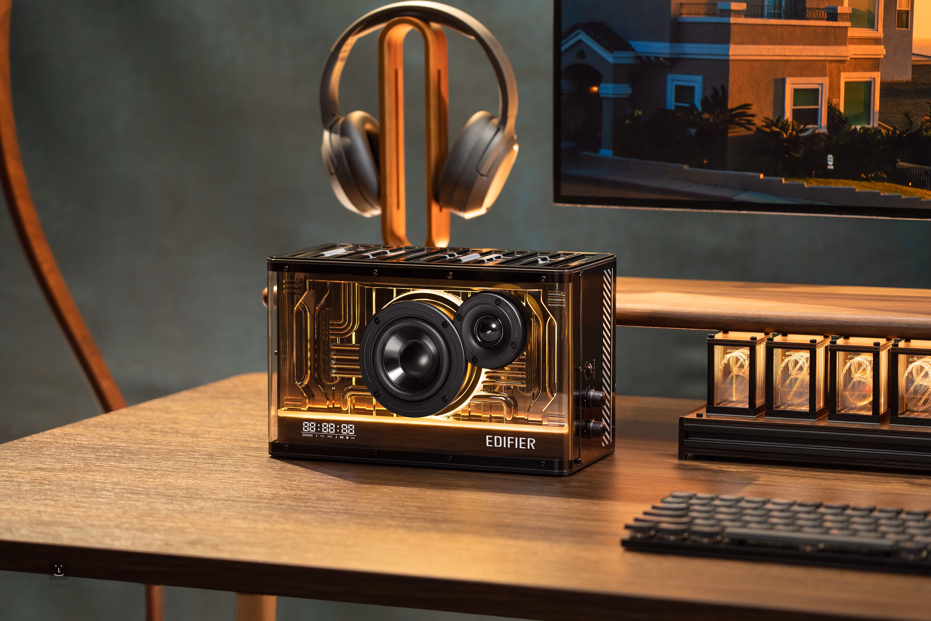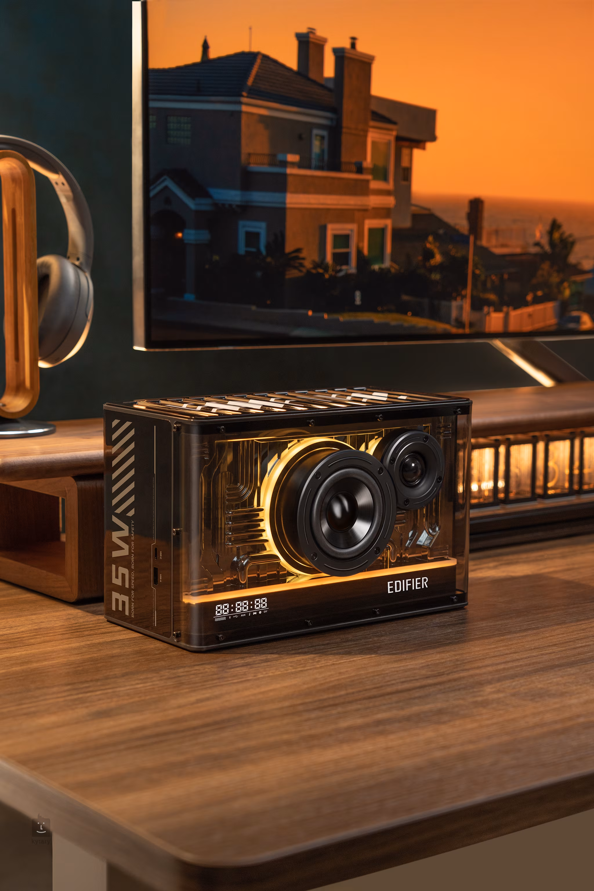 Edifier QD35 to nowoczesny i stylowy głośnik domowy o wyjątkowym designie, z łącznością Bluetooth i cyfrowym zegarem.