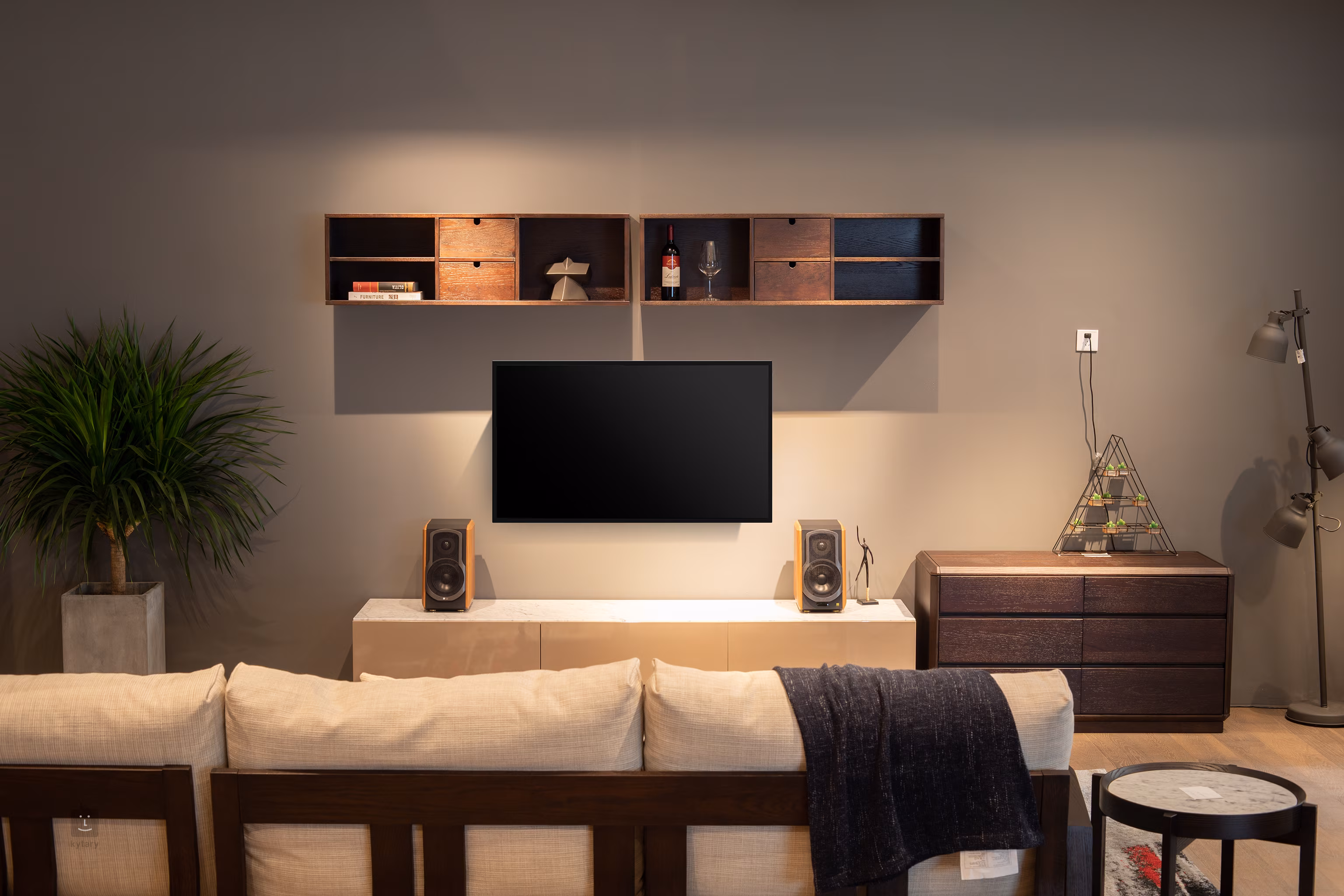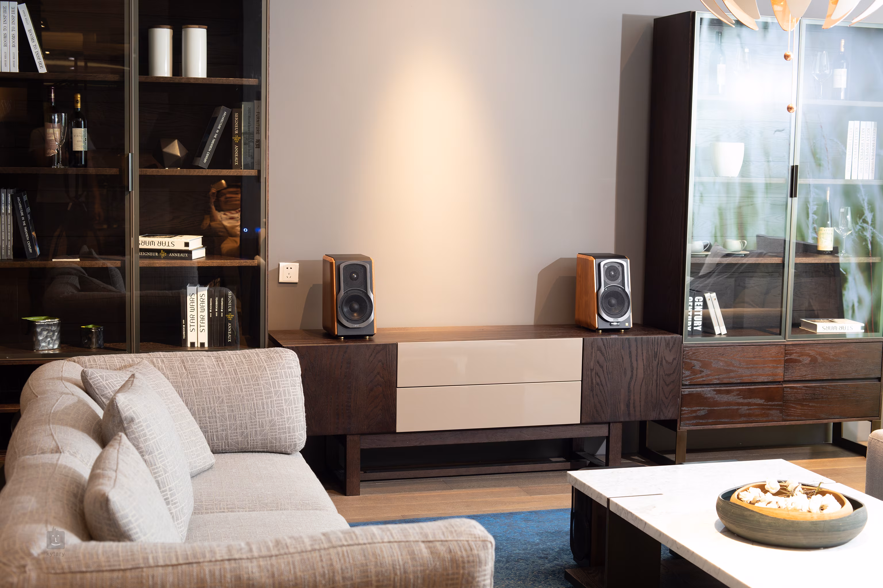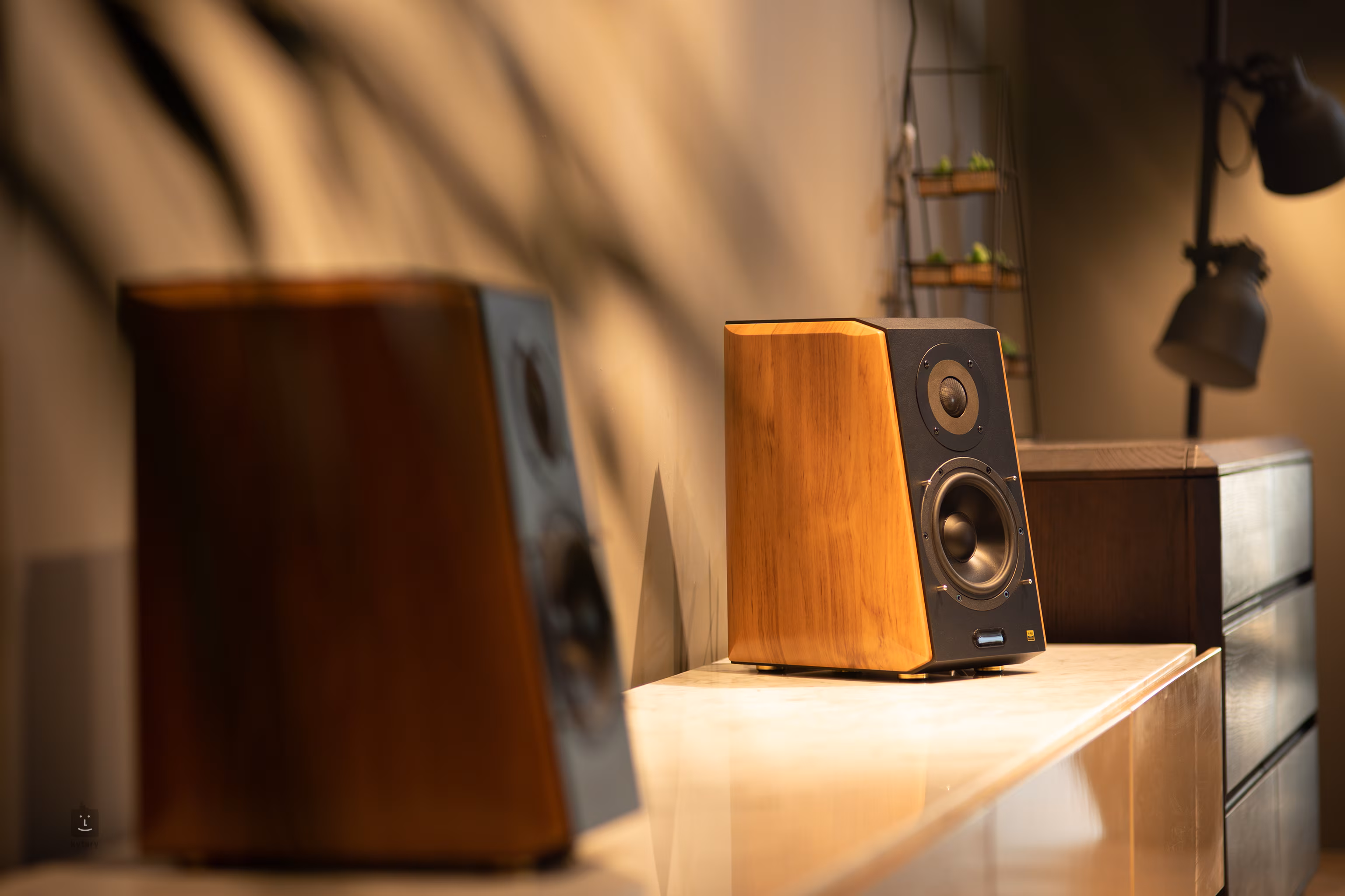 Niższy rezonans Wysokiej jakości drewniana obudowa minimalizuje rezonans akustyczny i dodatkowo redukuje zniekształcenia. Kątowy panel przedni pozwala przetwornikom kierować dźwięk bezpośrednio do uszu użytkownika.