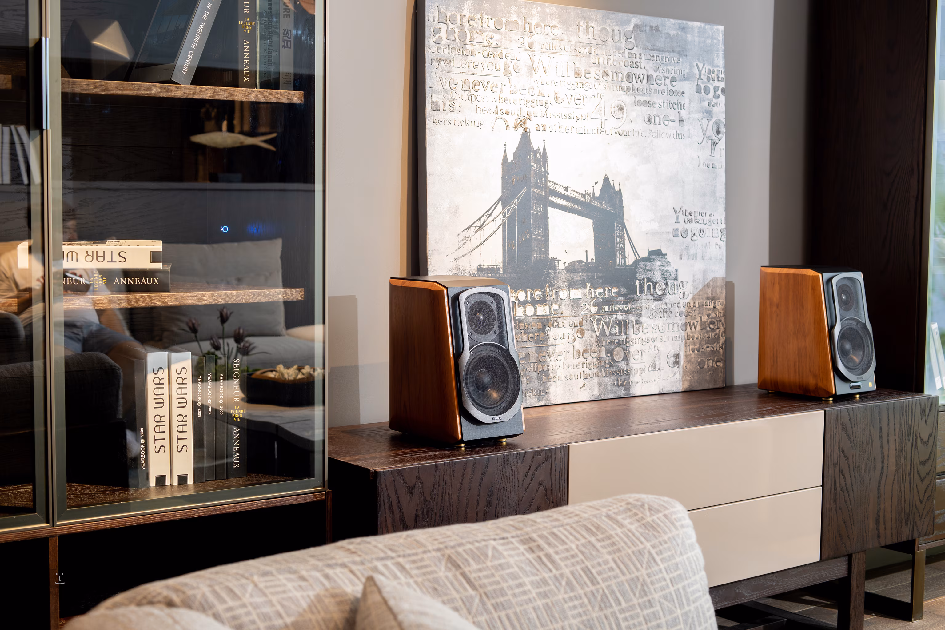 Pełne średnie i wyraźne wysokie tony 1-calowe głośniki wysokotonowe z tytanową membraną odtwarzają wysokie częstotliwości do 40 kHz i zapewniają wyjątkowo czyste i jasne tony wysokie. 5,5-calowe przetworniki średnio-niskotonowe ze stopu aluminium charakteryzują się szybką reakcją przejściową i niskimi zniekształceniami akustycznymi, dzięki czemu odtwarzają pełne średnie i mocne basy.
