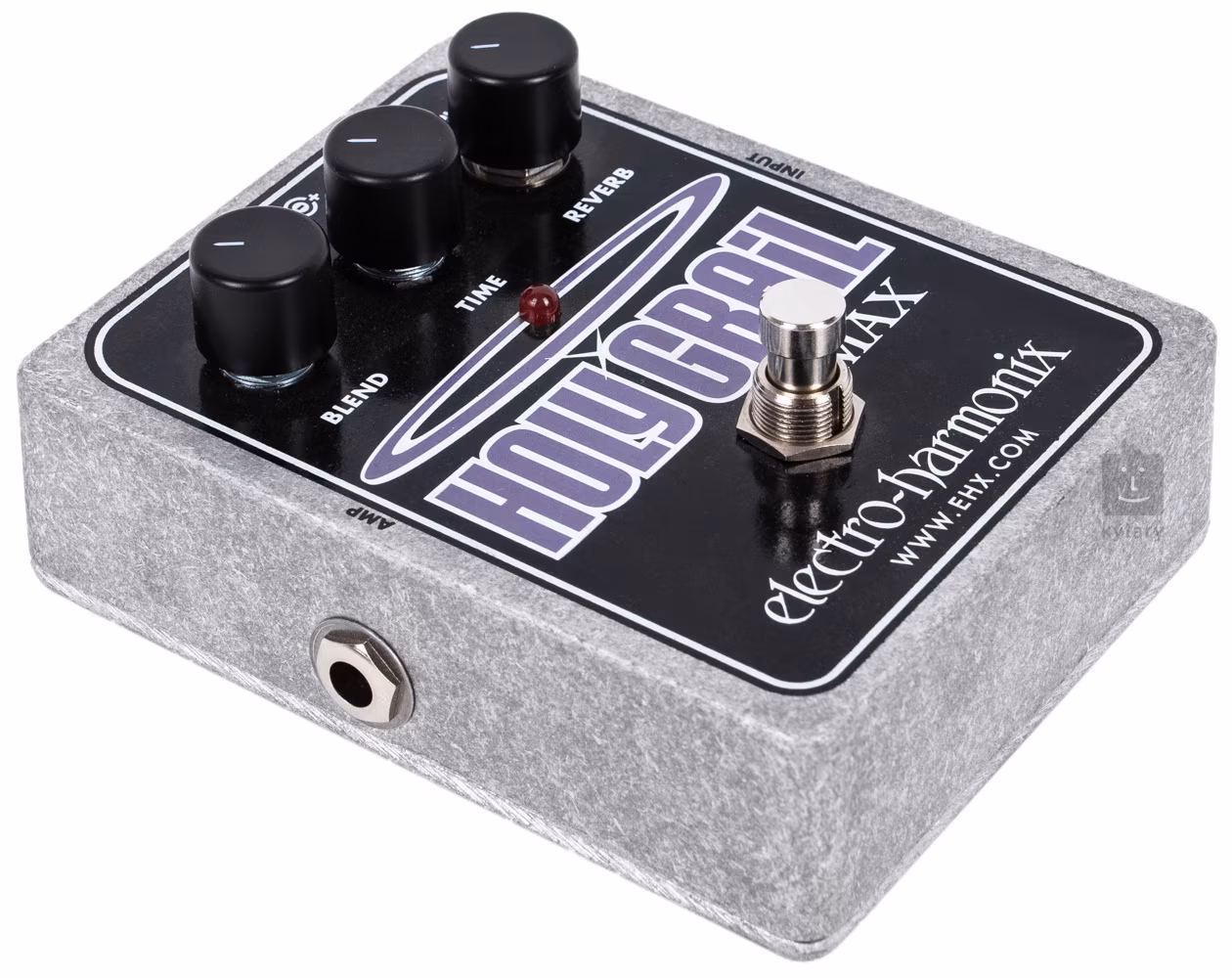 Holy Grail Max to rozbudowana wersja znanego reverbu Holy Grail od Electro Harmonix, w której popularne efekty (symulowany pogłos lampowy i przestrzenny pogłos Hall) zostały teraz uzupełnione o bogaty studyjny pogłos Plate z niemal nieskończonym pogłosem przy maksymalnym ustawieniu kontrolki Time oraz pogłos Reverse, który zachwyci graczy lubiących eksperymentować z brzmieniem. Ustawienia przetworników określają długość pogłosu (Time) i stosunek czystego sygnału, który pudełko przepuszcza do sygnału pogłosu (suchy/mokry).