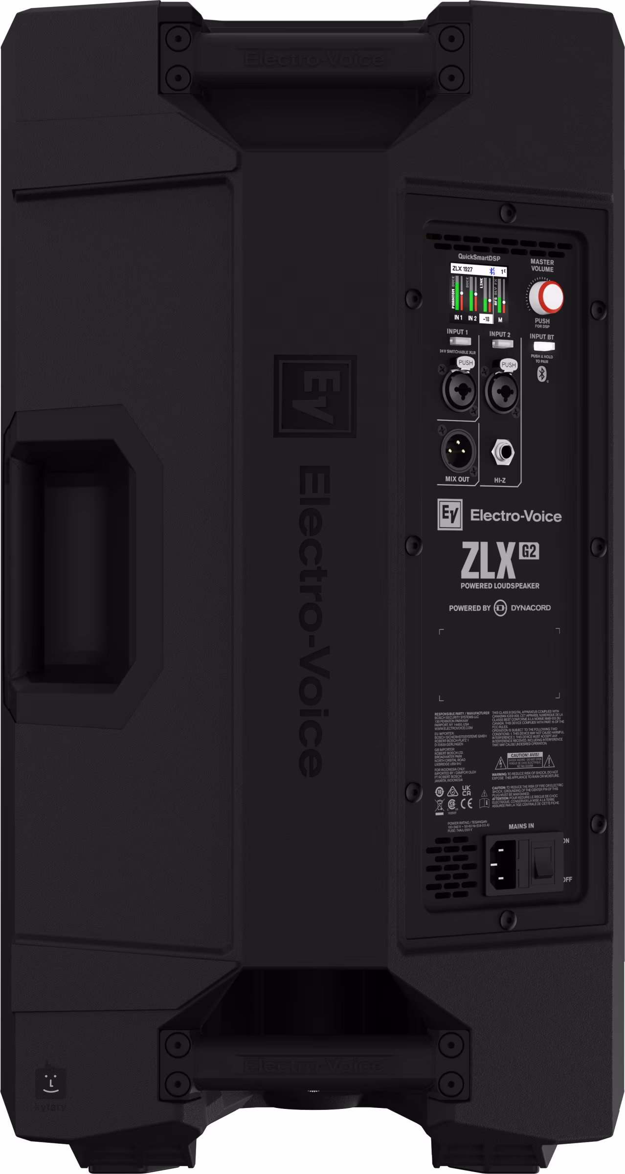 Głośniki ZLX-G2 są wyposażone w wysokiej klasy wzmacniaczeDYNACORD i wewnętrzny procesor DSP, który obsługuje cyfrowy miks, jednostkę FX, korektor, filtr AFS (Auto Feedback Suppression) i funkcję tłumienia. Głośnik posiada dwa kanały wejściowe, które składają się z połączonych złączy XLR/Jack 6,3 mm TRS, w tym zasilanie fantomowe +24 V dla mikrofonów pojemnościowych i kompatybilność ze źródłami o wysokiej impedancji (Hi-Z).