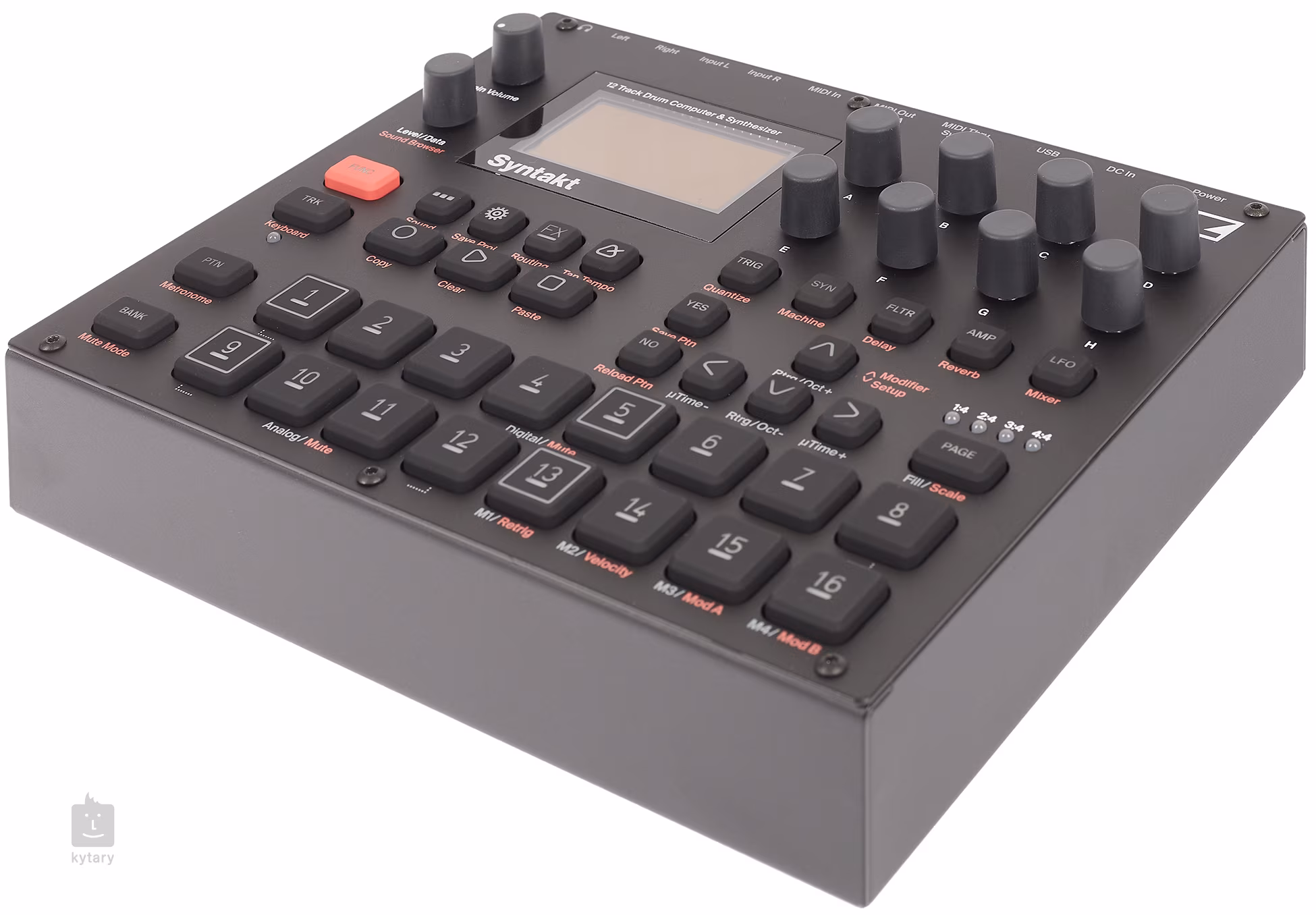Elektron Syntakt to kompaktowy, dwunastościeżkowy automat perkusyjny i syntezator, sampler i zaawansowany sekwencer przeznaczony do gry na żywo. Dzięki temu jest on bardzo trwały, a układ elementów sterujących został podporządkowany szybkiej orientacji. Syntakt zawiera 35 analogowych i cyfrowych próbek perkusyjnych lub instrumentów do tworzenia melodii, harmonii i precyzyjnych linii basu. Ponadto, dzięki oprogramowaniu Overbridge, można go łatwo zintegrować z systemem DAW i używać tak samo łatwo jak wtyczki.